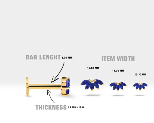 14K Solid Gold Cartilage Animal Style Lion Design Natural Sapphire Piercing, 16G (1.2mm) Screw Back Piercing, 8 mm Bar Length | LP00046S