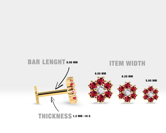 14K Solid Gold Cartilage Animal Style Lion Design Natural Ruby Piercing, 16G (1.2mm) Screw Back Piercing, 8 mm Bar Length | LP00046R
