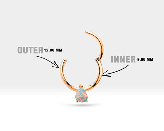 Cartilage Hoop with Drop Cut Opal Piercing in 14K Yellow-White-Rose Solid Gold Helix 12mm