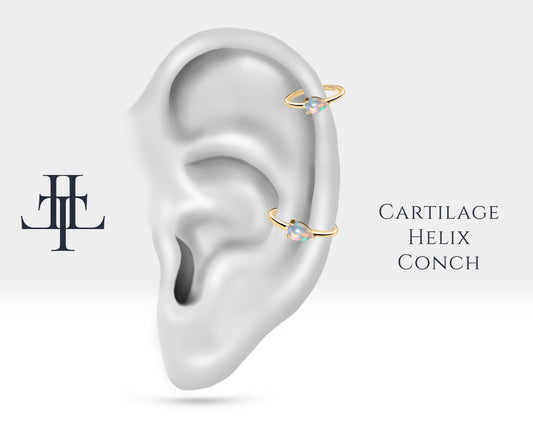 Cartilage Tragus Piercing Design 3 Size Marquise Cut Opal Piercing