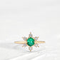 Dainty Ring, Snow Flake Ring, Emerald rose cut with Diamonds, 14K Gold | LR00053DE
