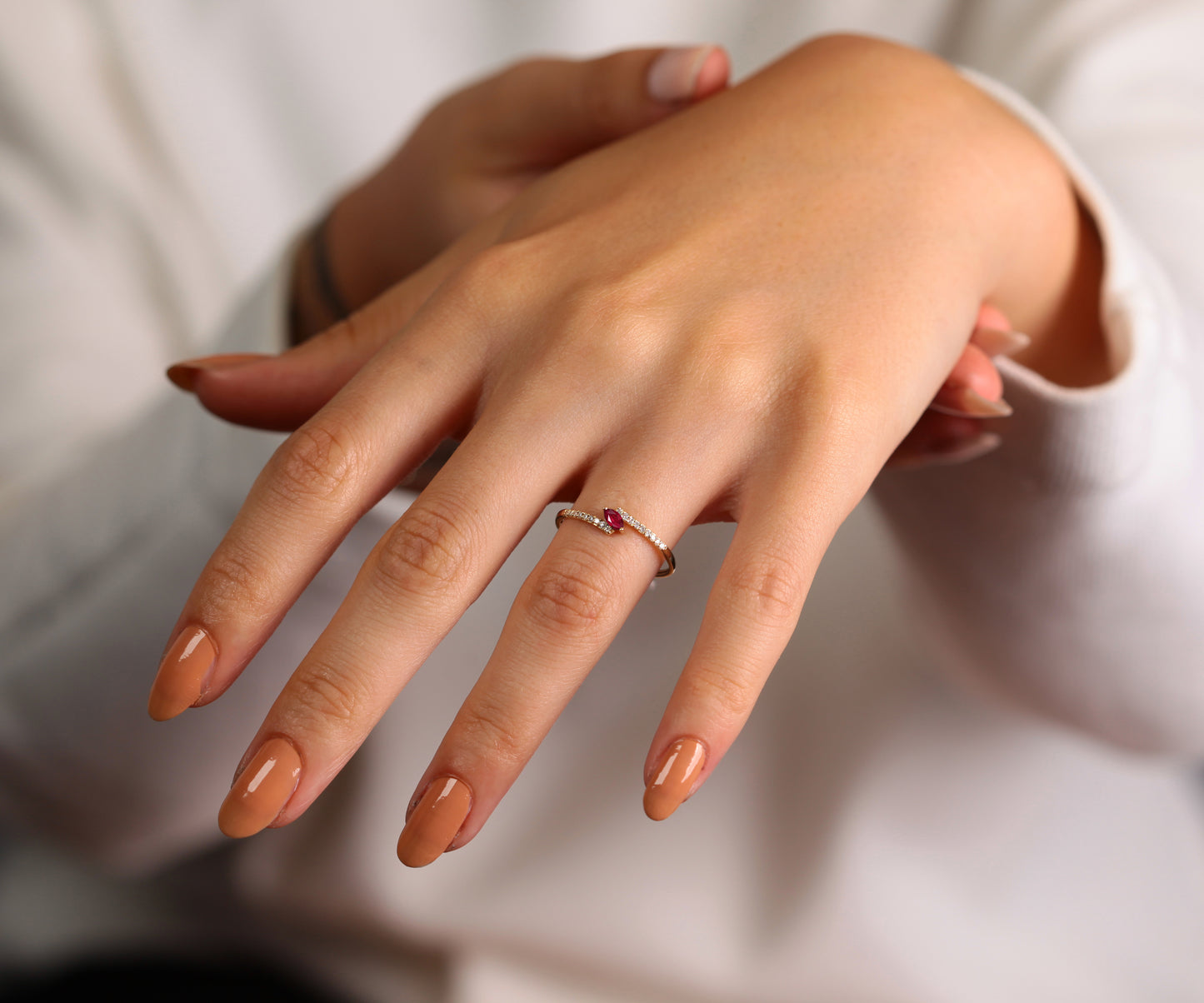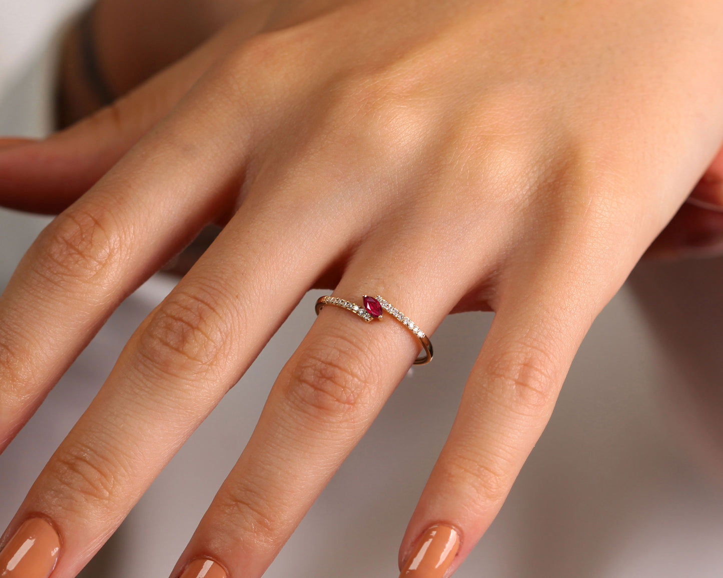This sparkling design product is a dainty ring.Using natural ruby and diamond stone adds privilege to the product. It can be preferred for all special day gift or daily using.