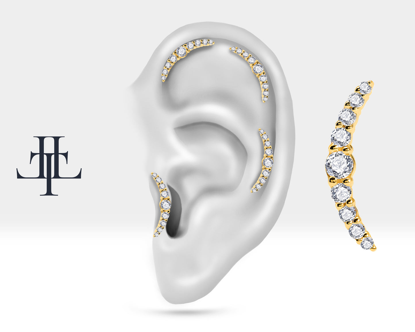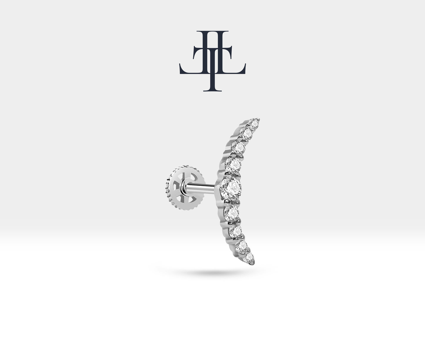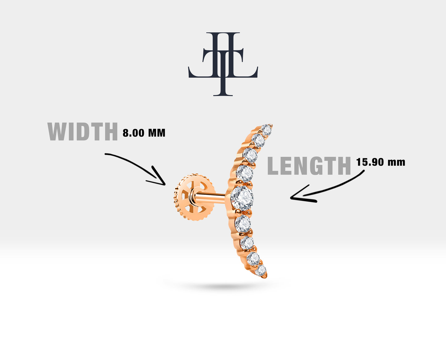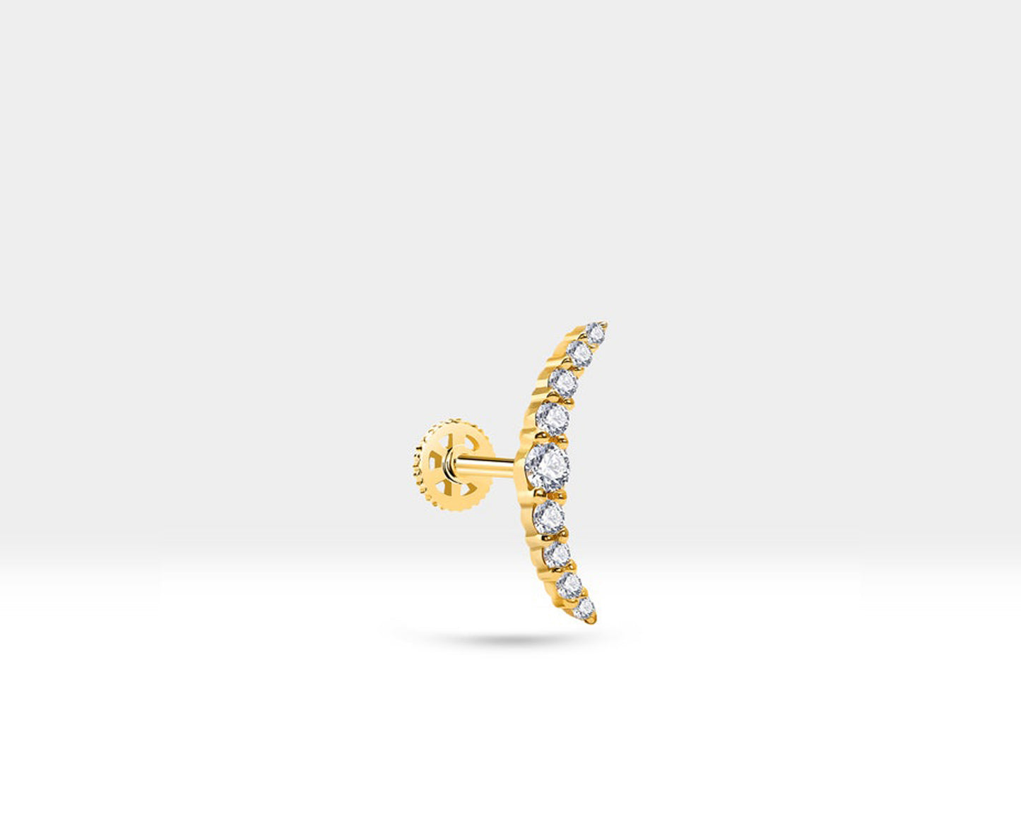 About This Product: This gold piercing is made of 14k solid gold and diamond stones. This earring is ideal for cartilage, helix, forward helix, daith, and tragus piercings. Single piercing.
