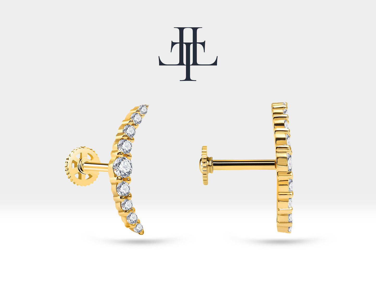 14K Solid Gold Cartilage Moon Diamond Design Clicker Piercing,Single Helix Stud Earring,White-Yellow- Rose Gold,16G Screw Back Piercing