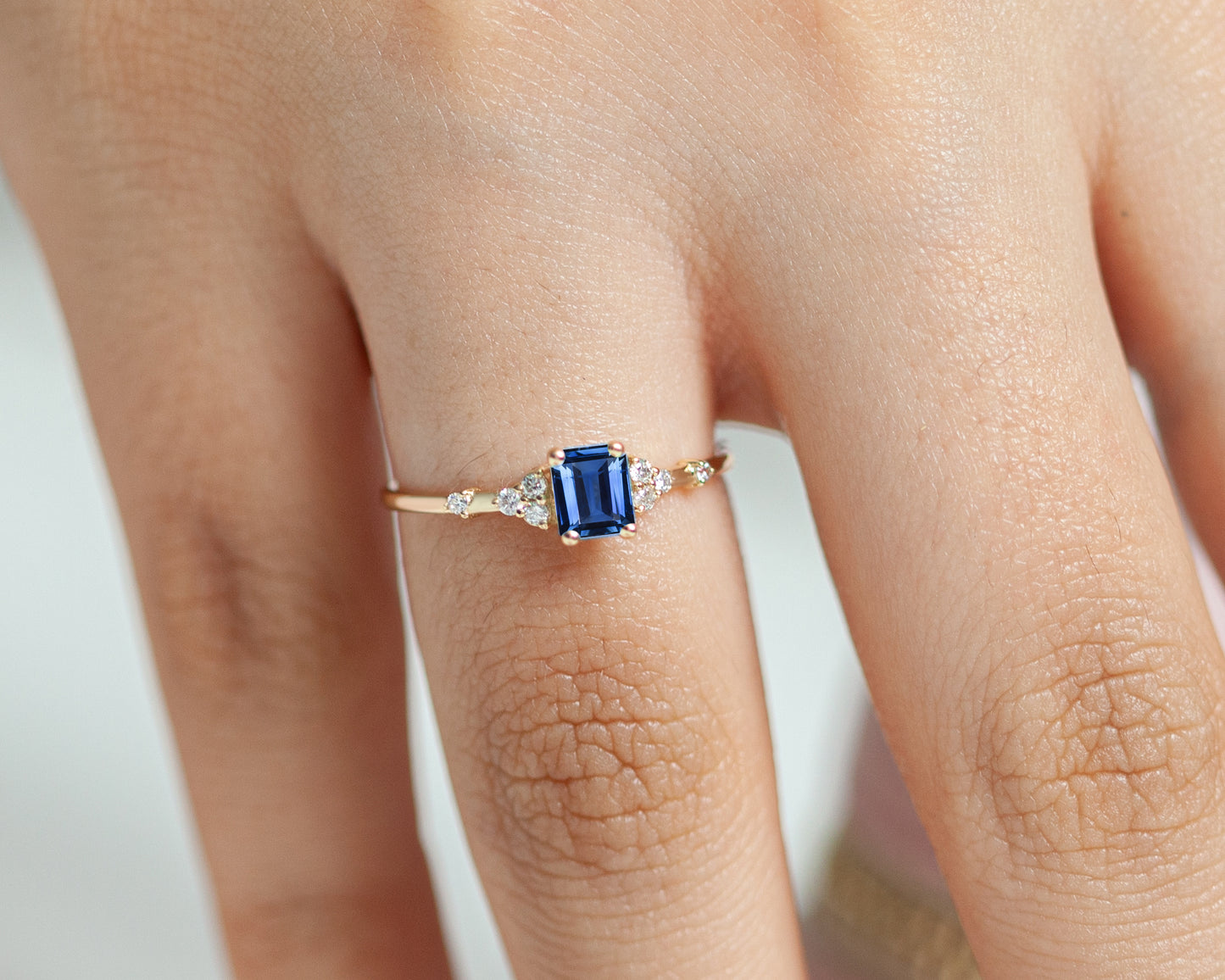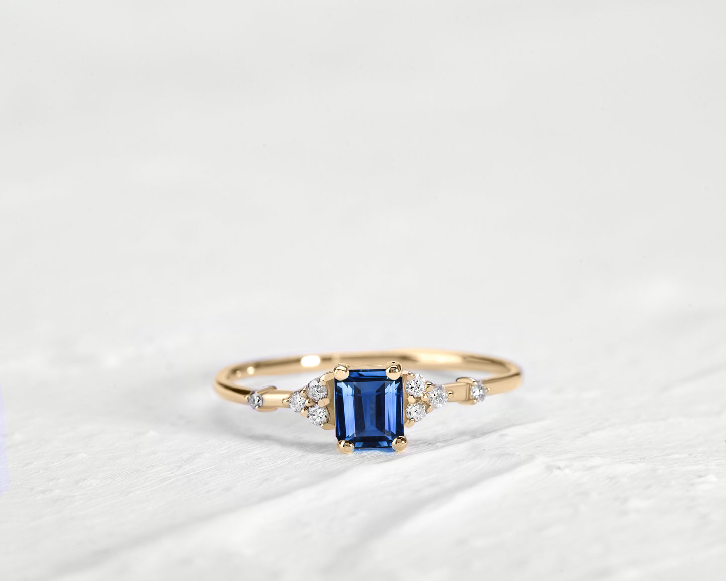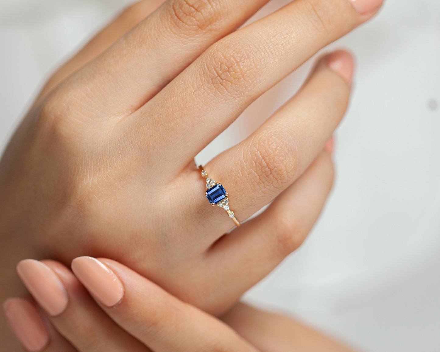 About This Product: This gold rings are made of 14k gold, sapphire and diamond stones. Since we use natural emerald, the color of the stone may differ. It is a perfect choice for elegant hands with elegant and minimal stance on hand. We made it with love and the best diamond.
