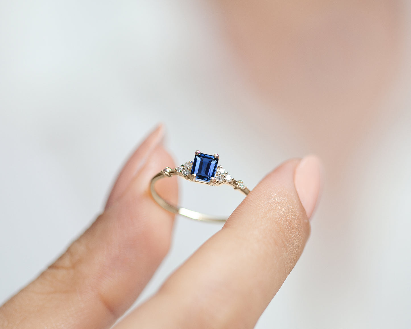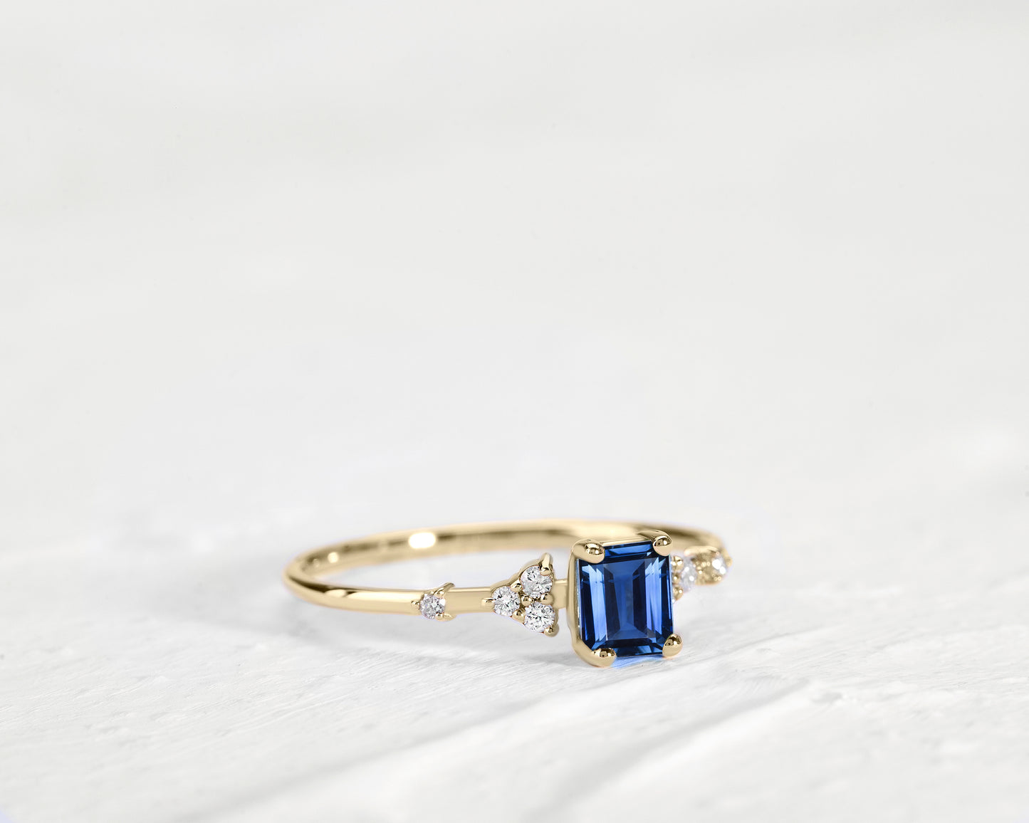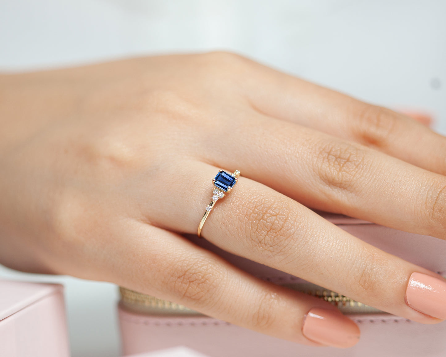 About This Product: This gold rings are made of 14k gold, sapphire and diamond stones. Since we use natural emerald, the color of the stone may differ. It is a perfect choice for elegant hands with elegant and minimal stance on hand. We made it with love and the best diamond.