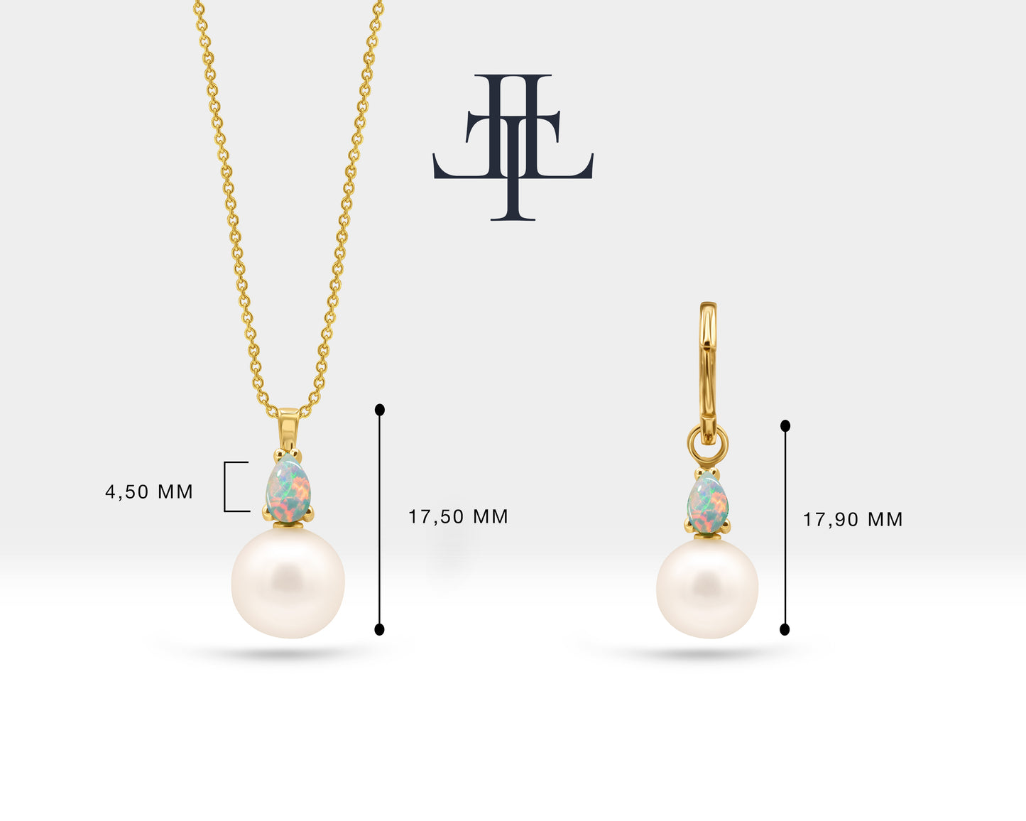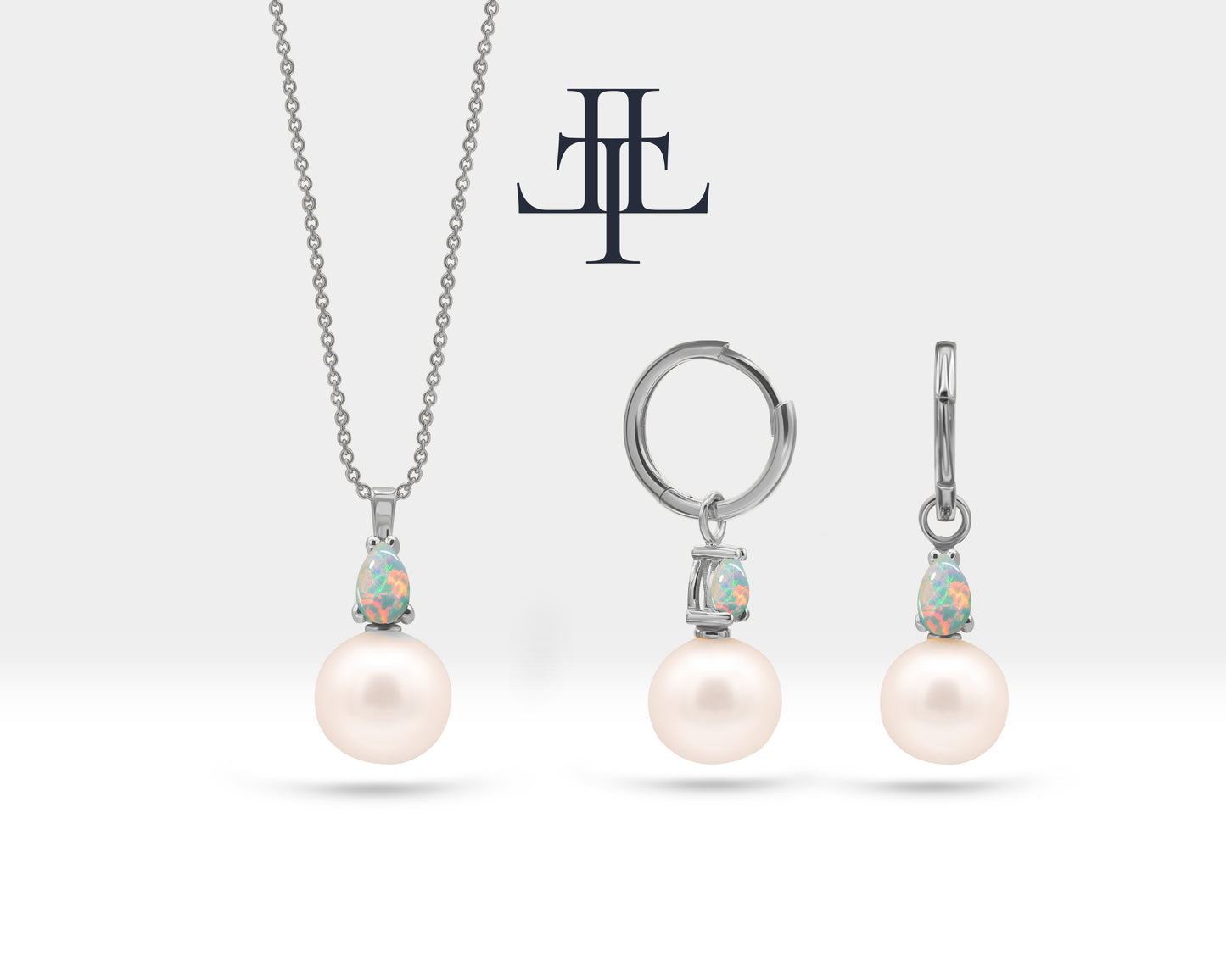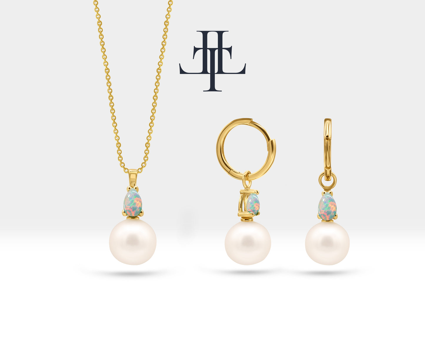 This Pearl Necklace and Earrings Set is a beautiful jewelry set are made from 14K solid gold, with the addition of pear-cut opal. This combination of pearls, gold, and opal can create a classic and elegant look, perfect for bridal jewelry.