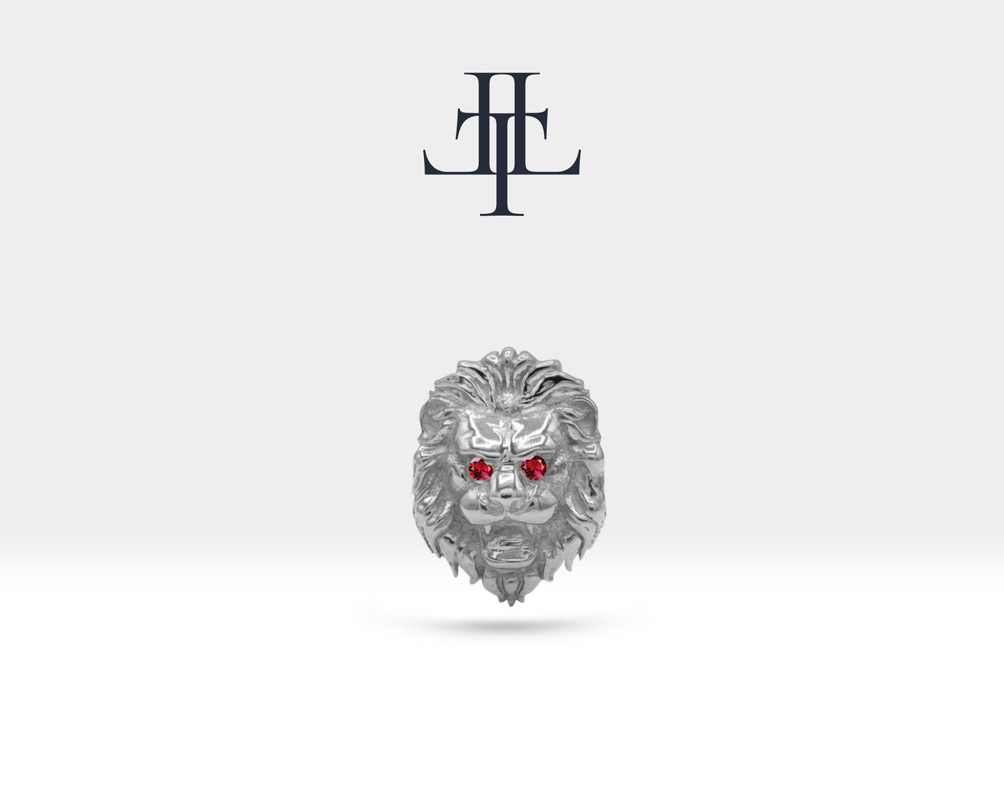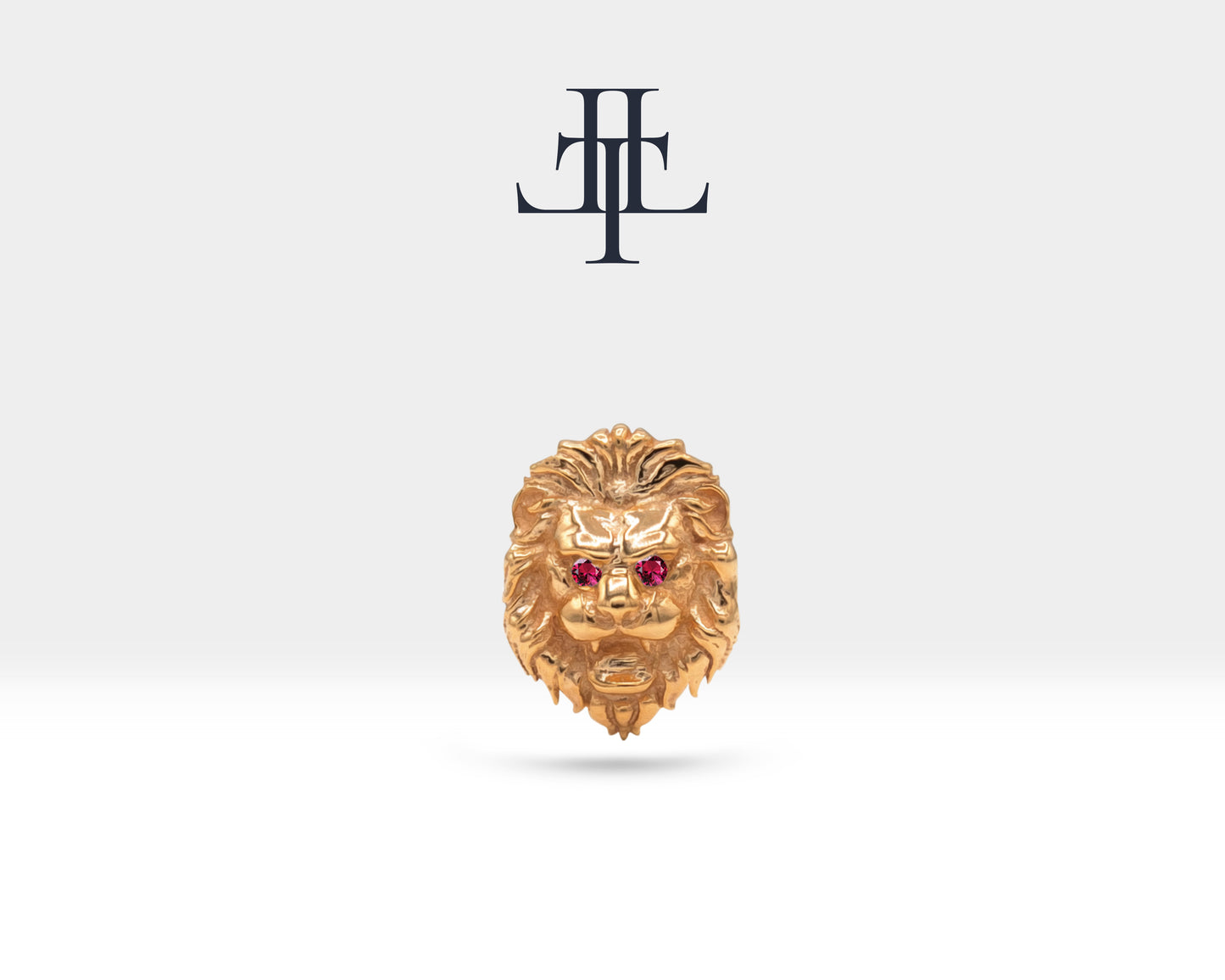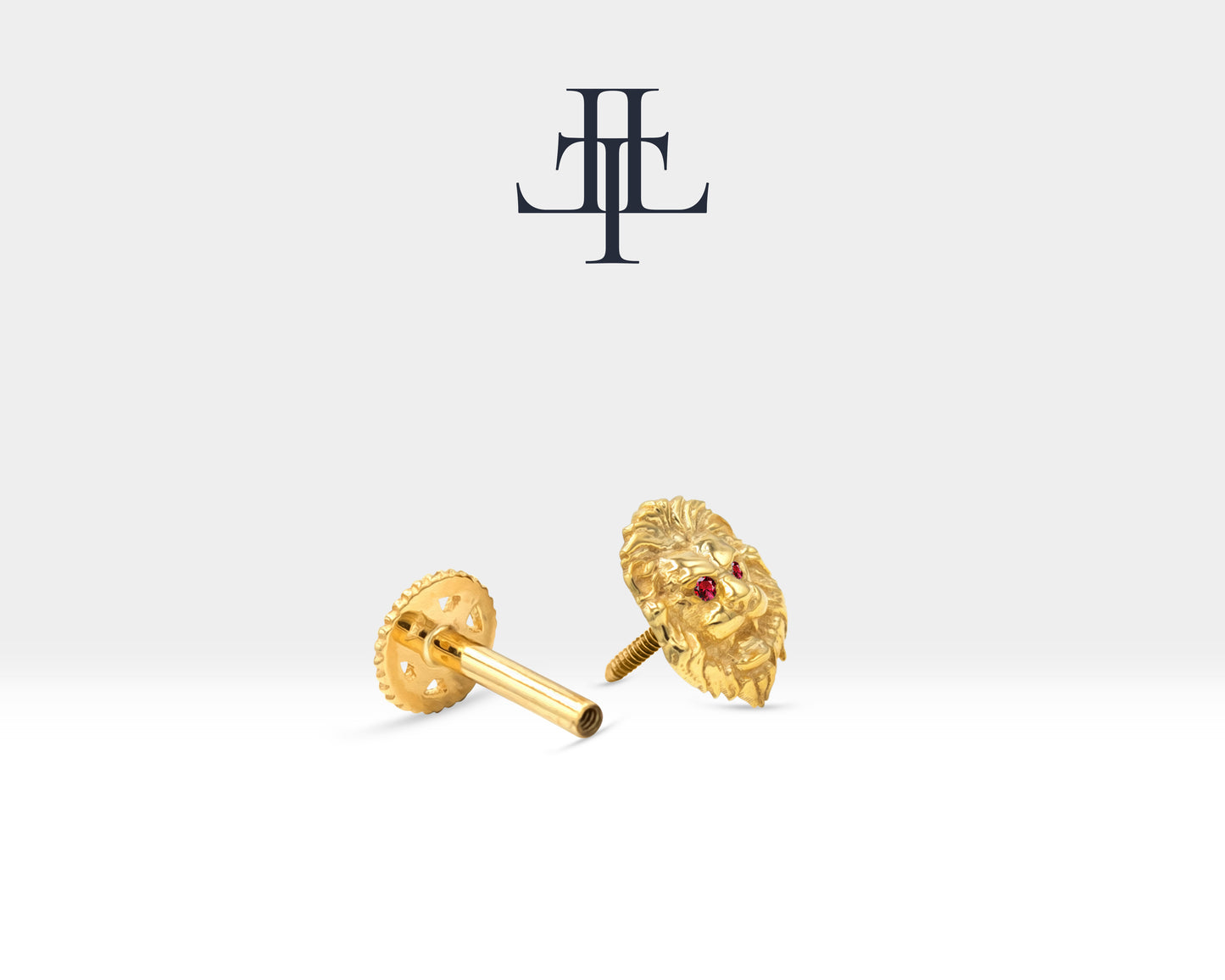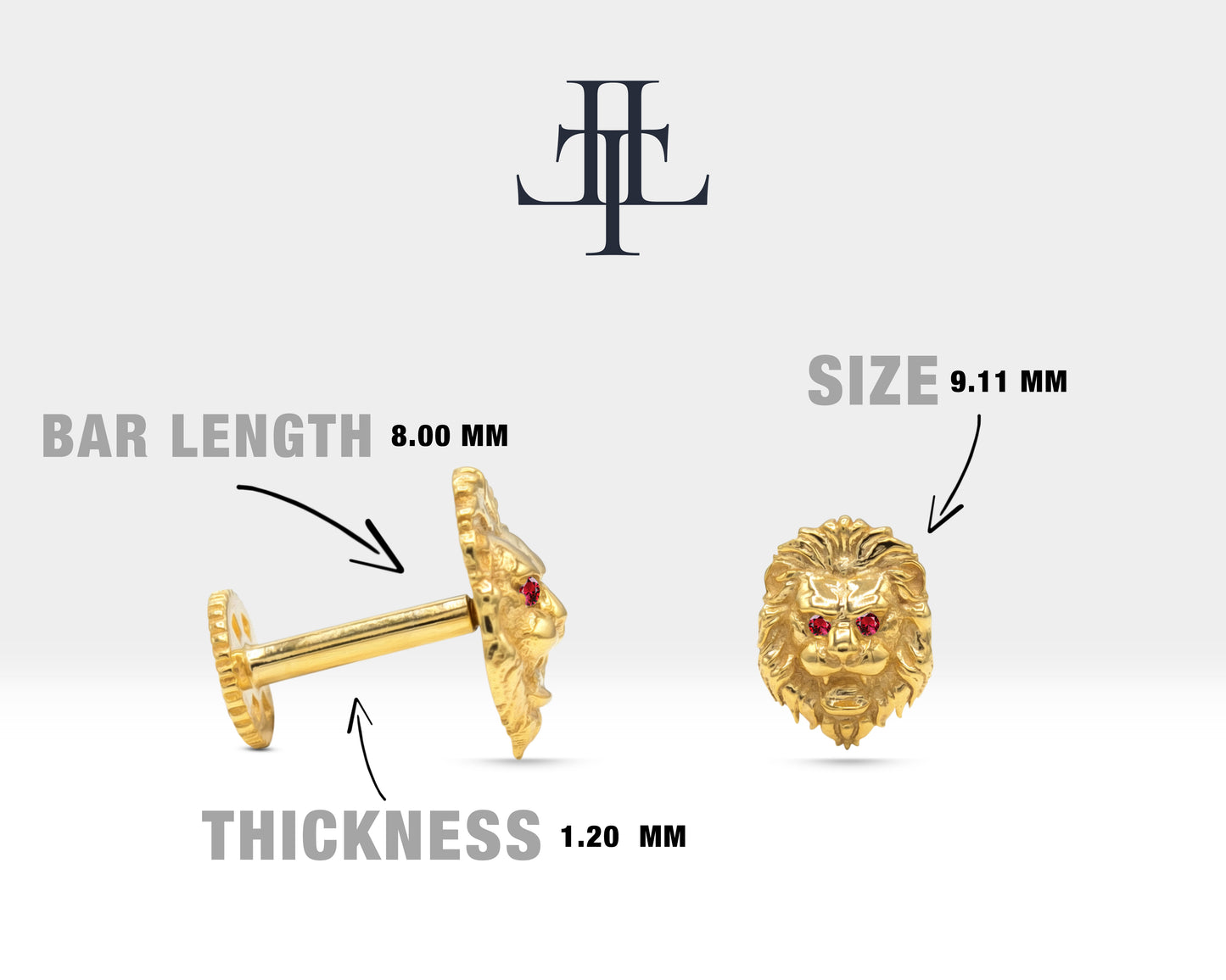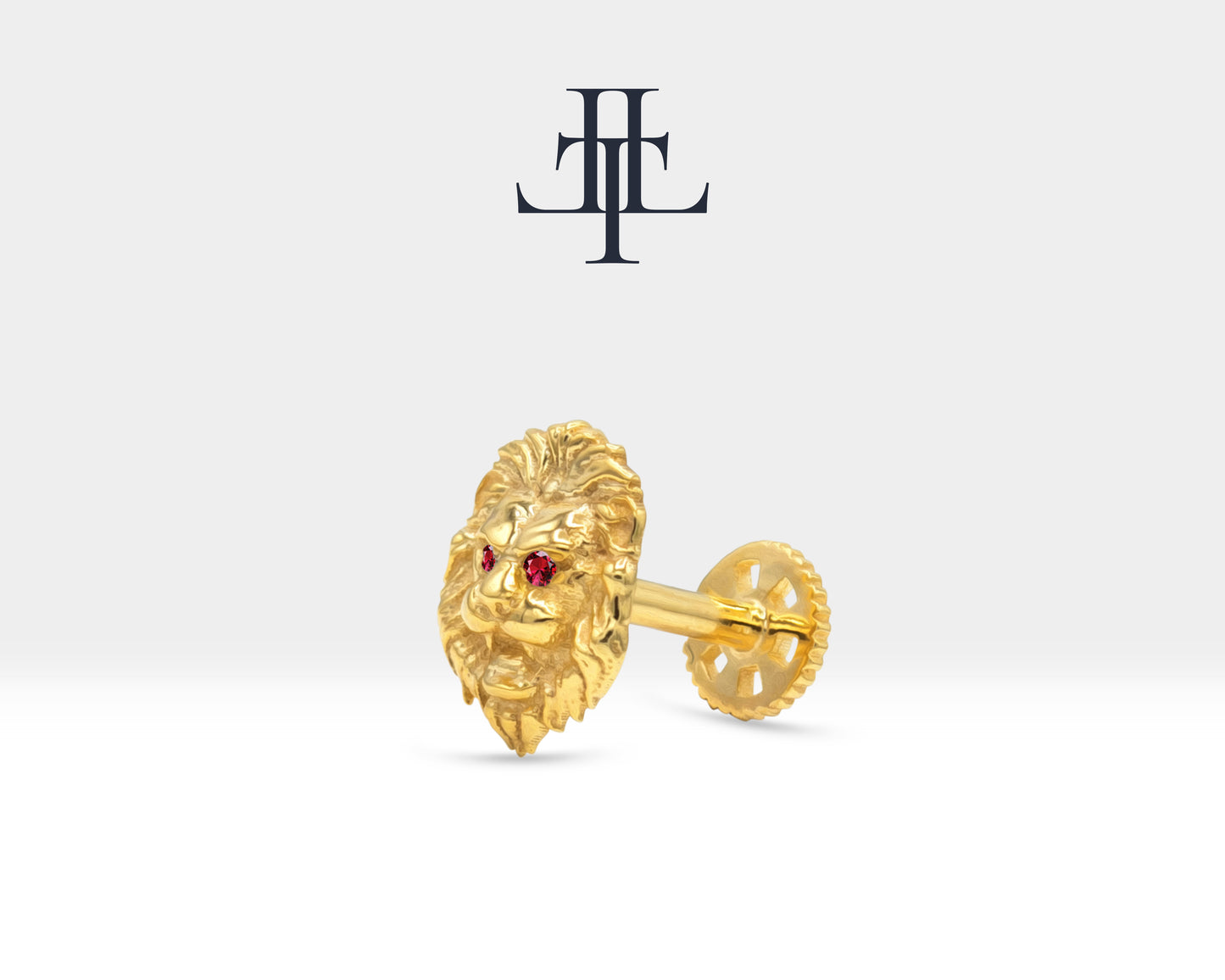 14K Solid Gold Cartilage Animal Style Lion Design Natural Ruby Piercing, 16G (1.2mm) Screw Back Piercing, 8 mm Bar Length | LP00046R