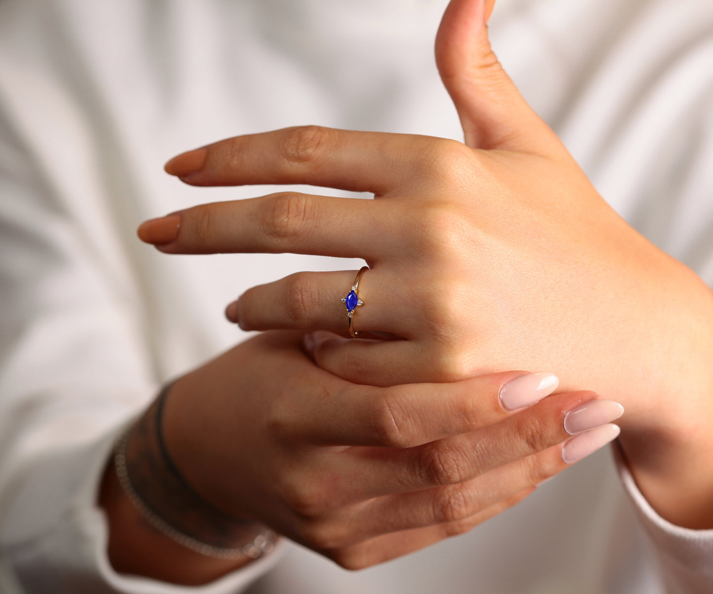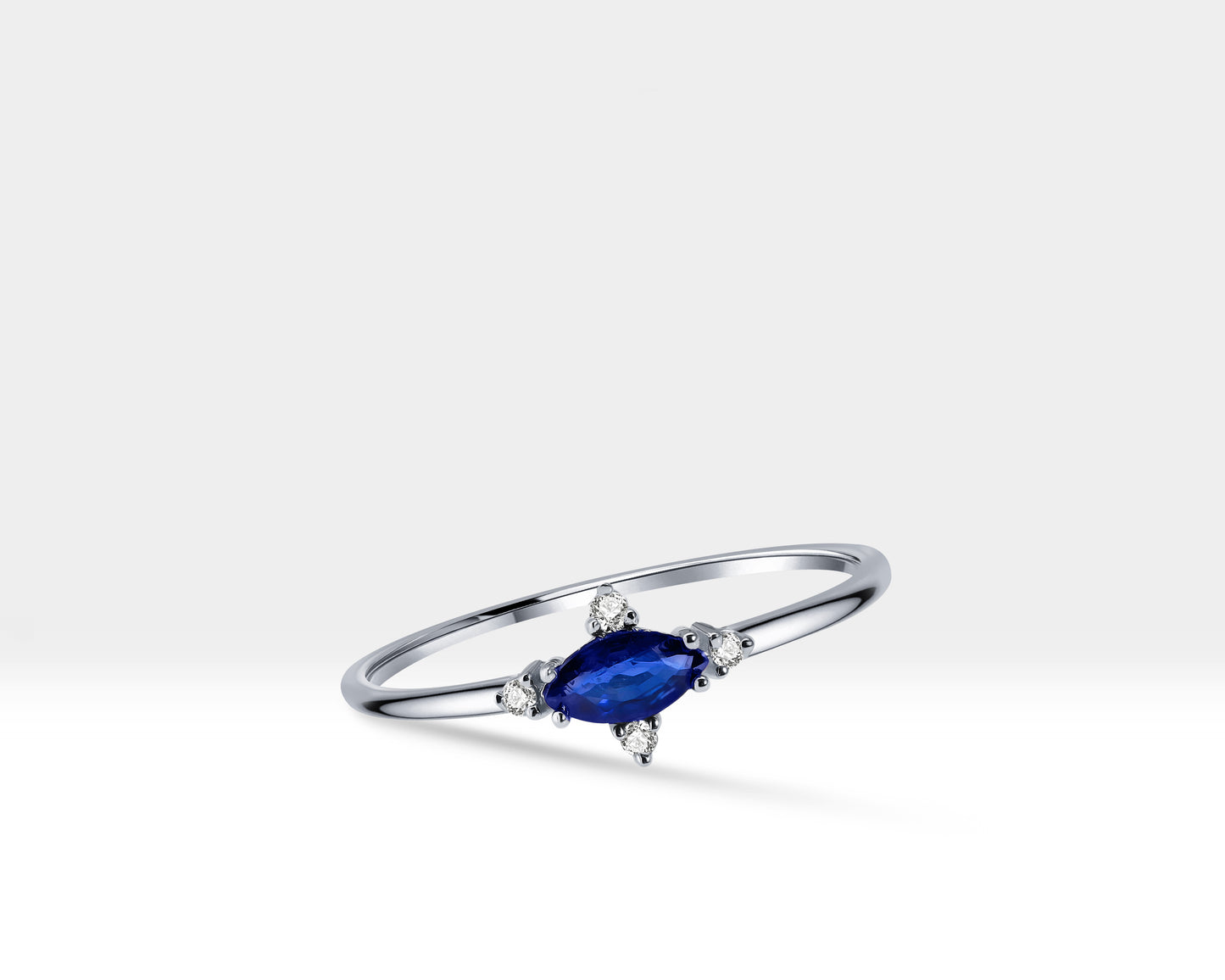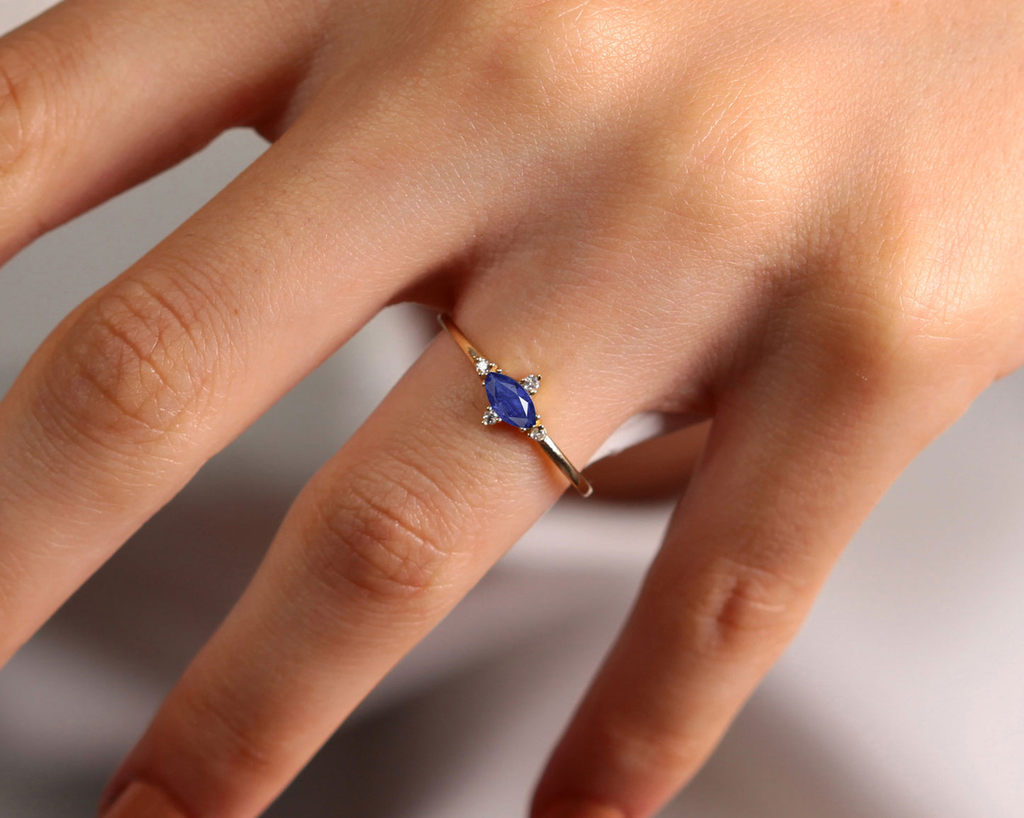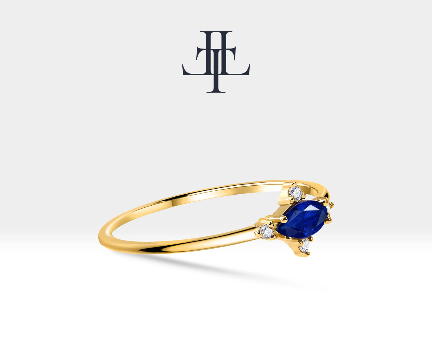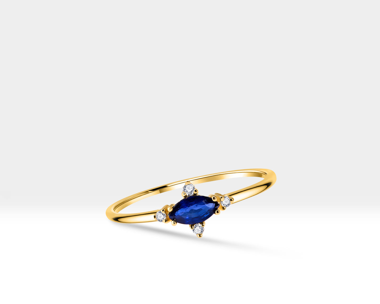 14K Yellow Gold Ring,Straight Shank Engagement Ring,Marquise Cut Sapphire Ring