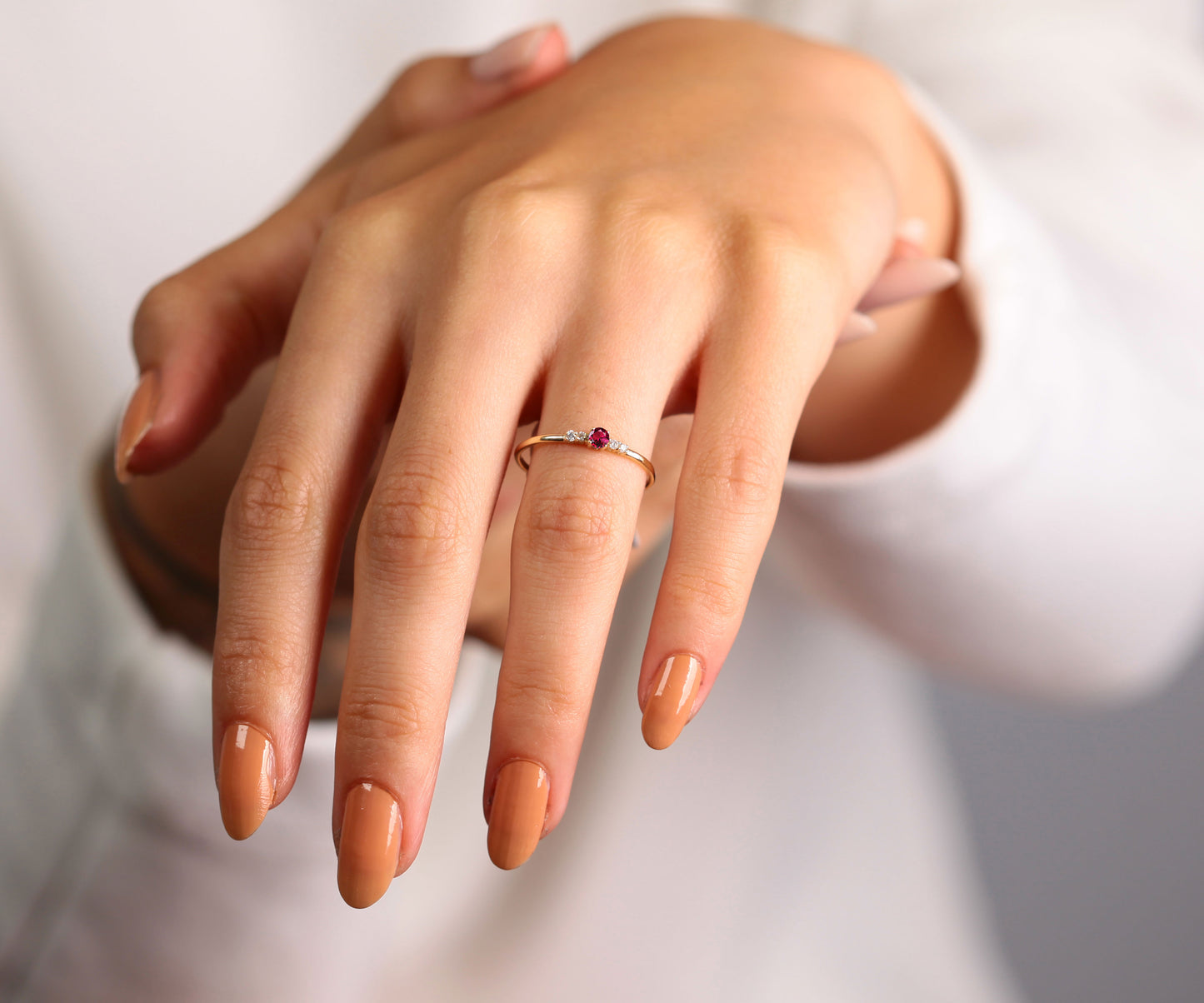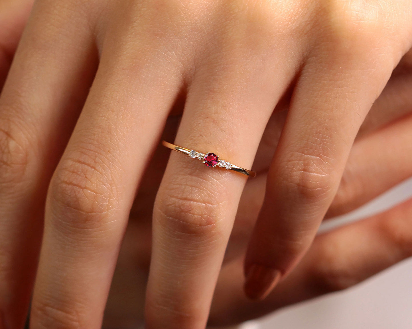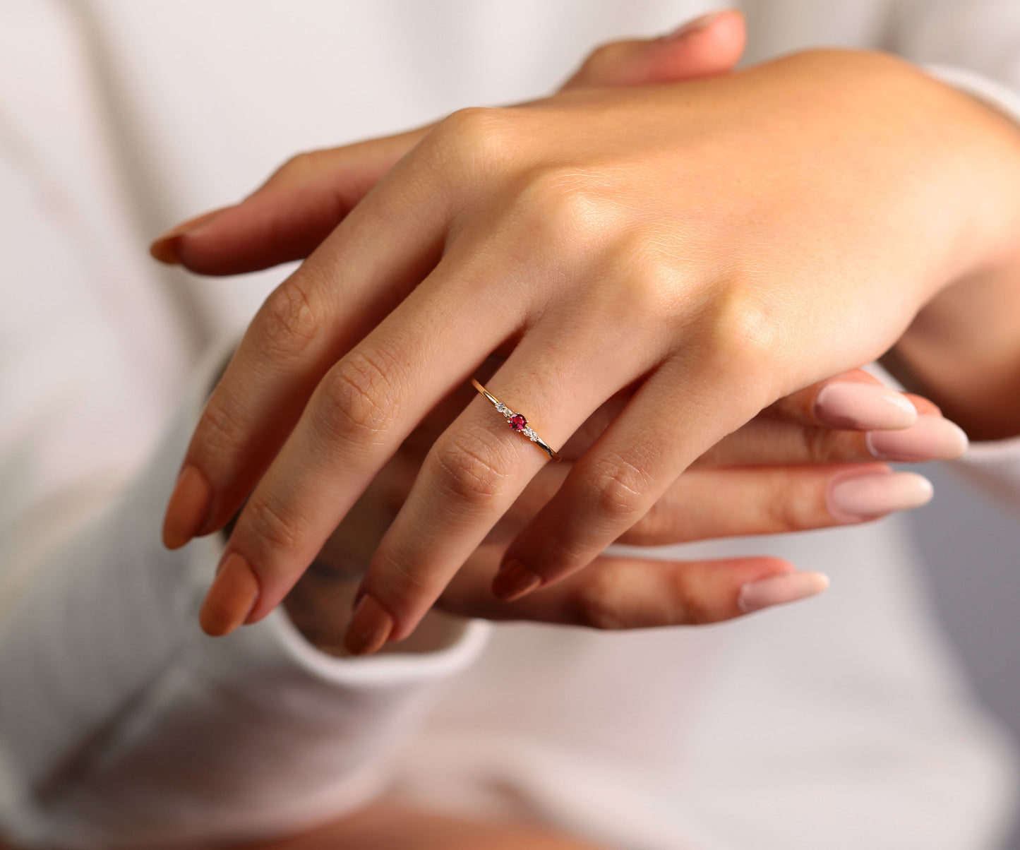 This sparkling design product is a dainty ring.Using natural ruby and diamond adds privilege to the product. It can be preferred for all special day or daily using.It is prefer for vintage who love.