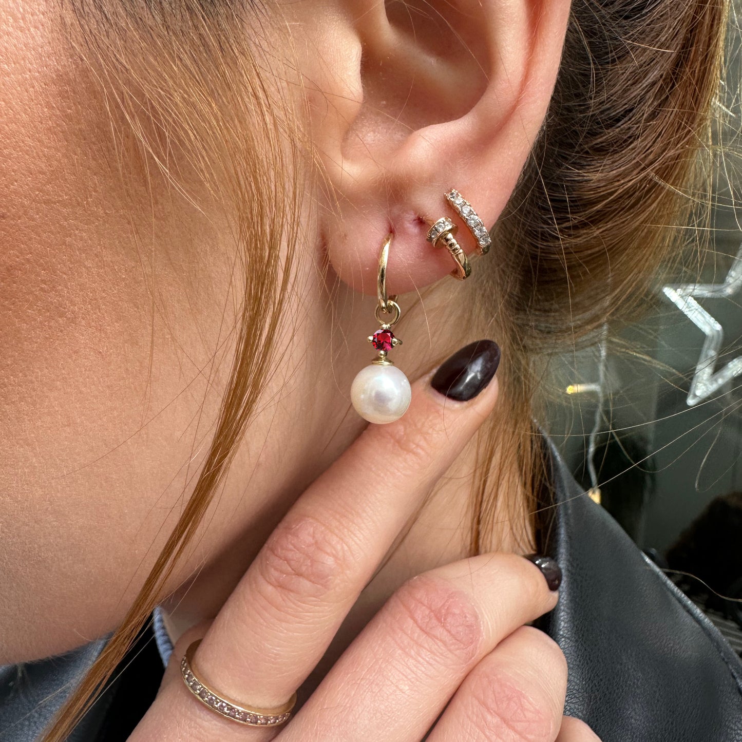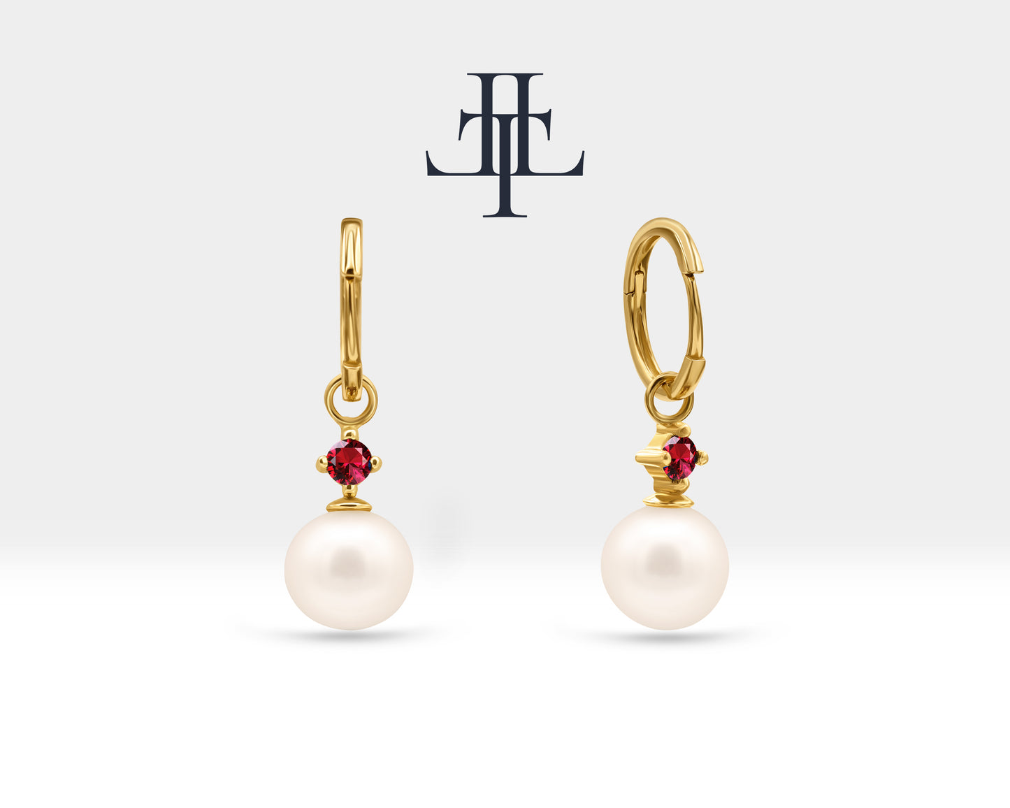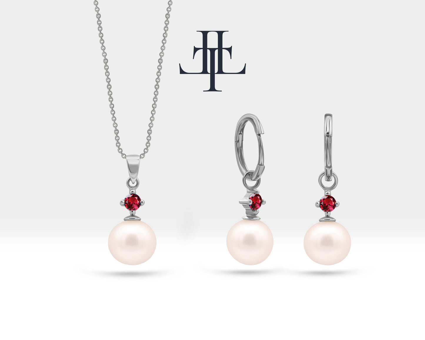 Bridal Jewelry Set of Pearl Earrings and Necklace Set in 14K Solid Gold Jewelry Set with Ruby and Natural Pearl