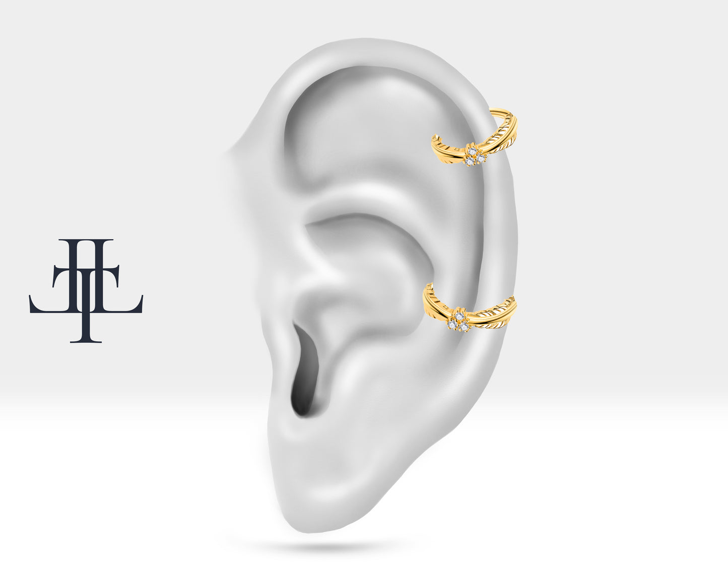 About this product: This gold conch earrings are made of 14K gold and Diamond stones. This earring is ideal for cartilage, lobe, helix ,forword helix, daith, snug, rook and tragus piercings. It's a single earring
