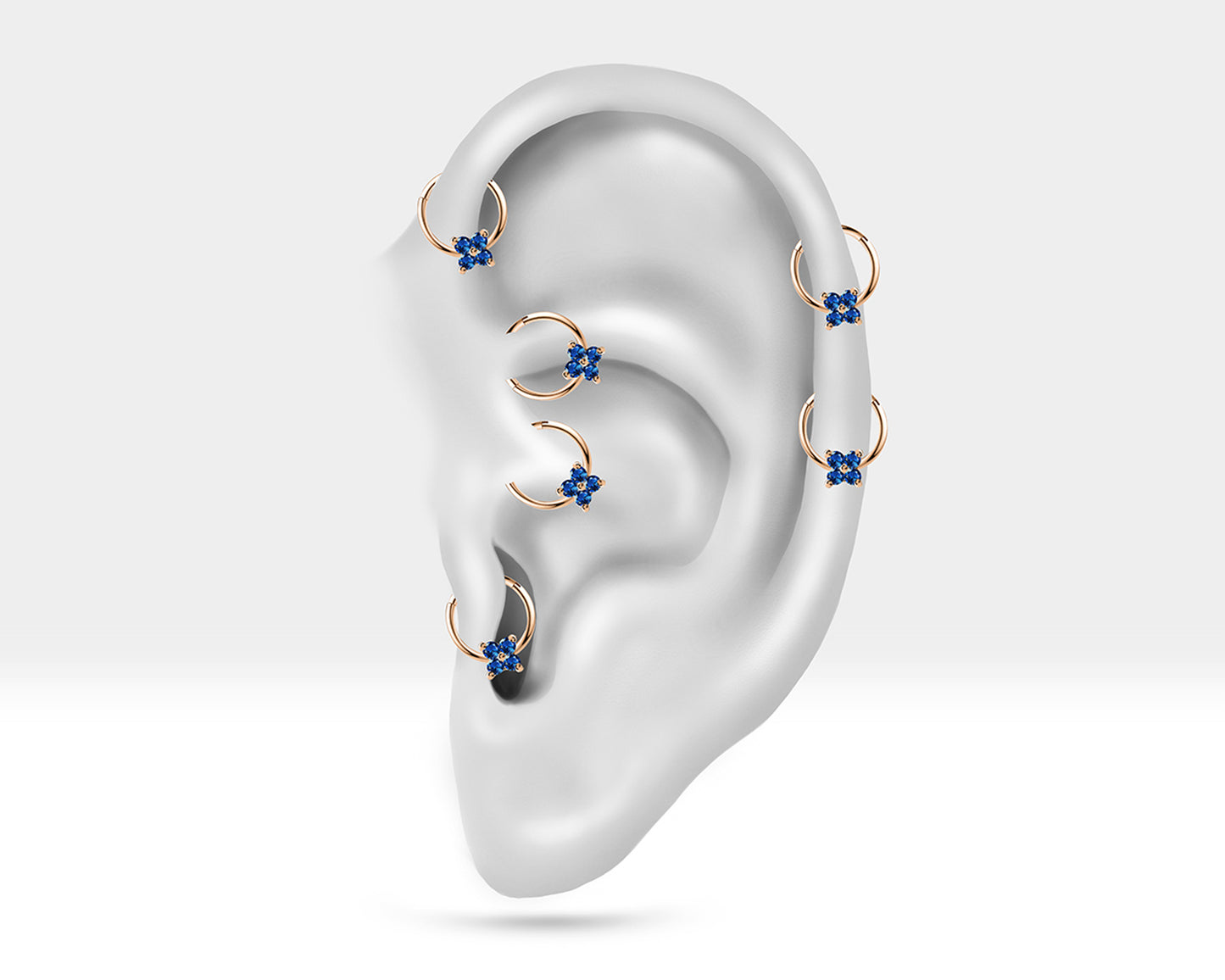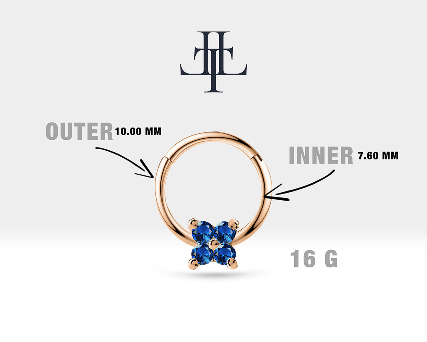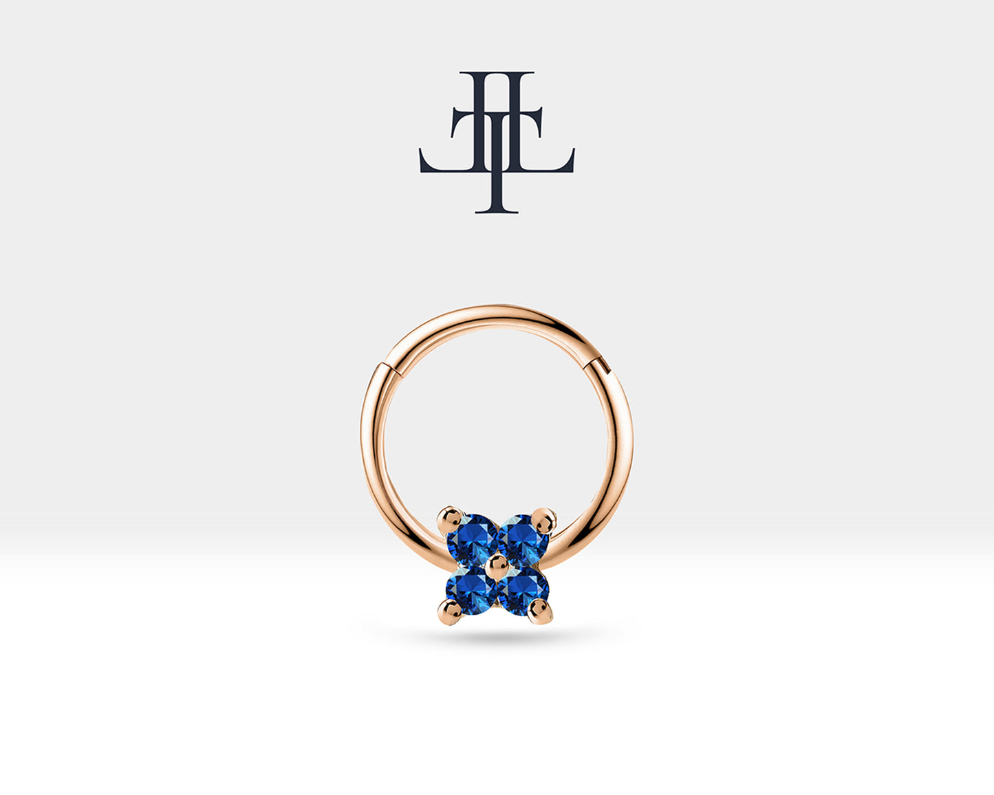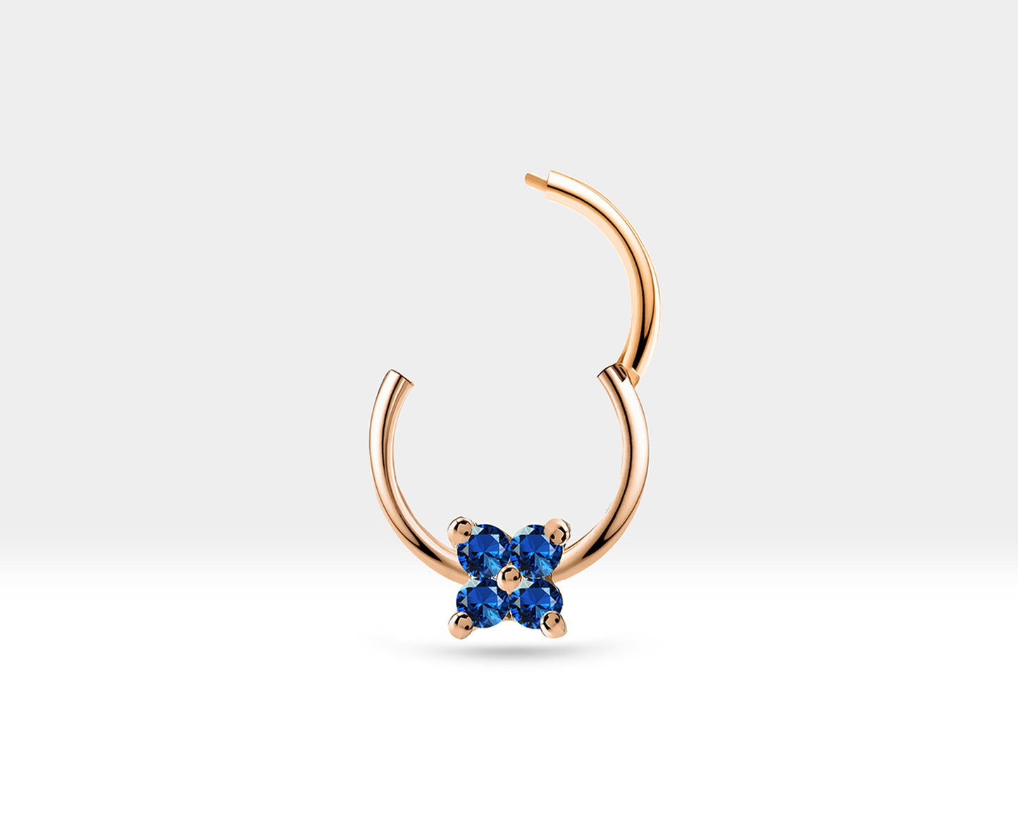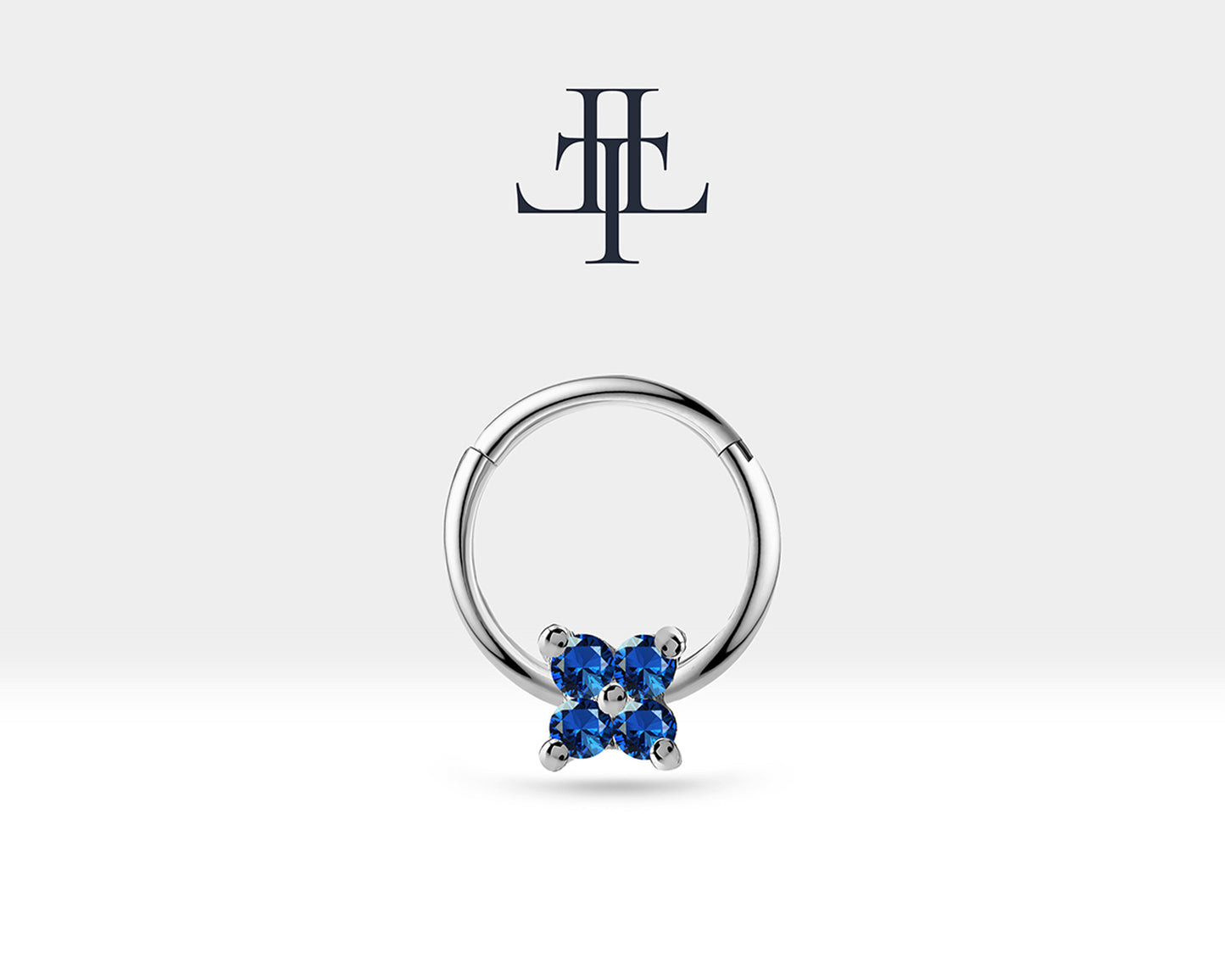 This hoop clicker with four sapphire is for cartilage,helix,tragus or septum too