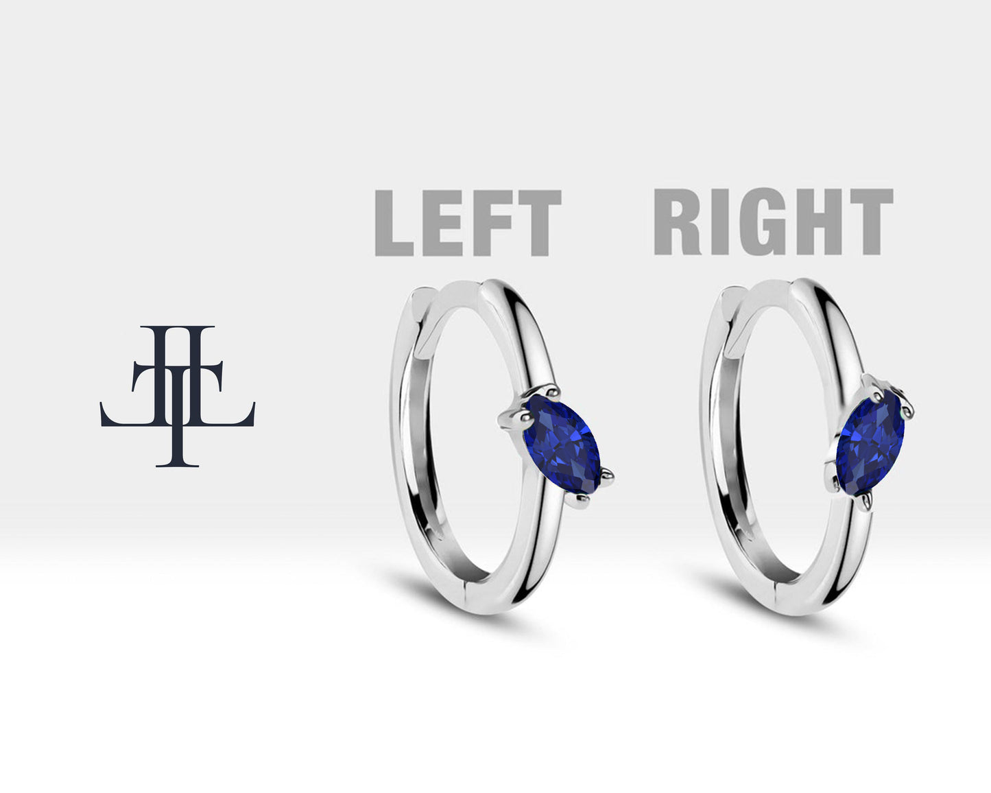 About this product: This gold hoop earrings are made of 14k gold and Sapphire stones. Since we use natural Sapphire , the color of the stone may differ. This earring for earlobe. It's a single earring.