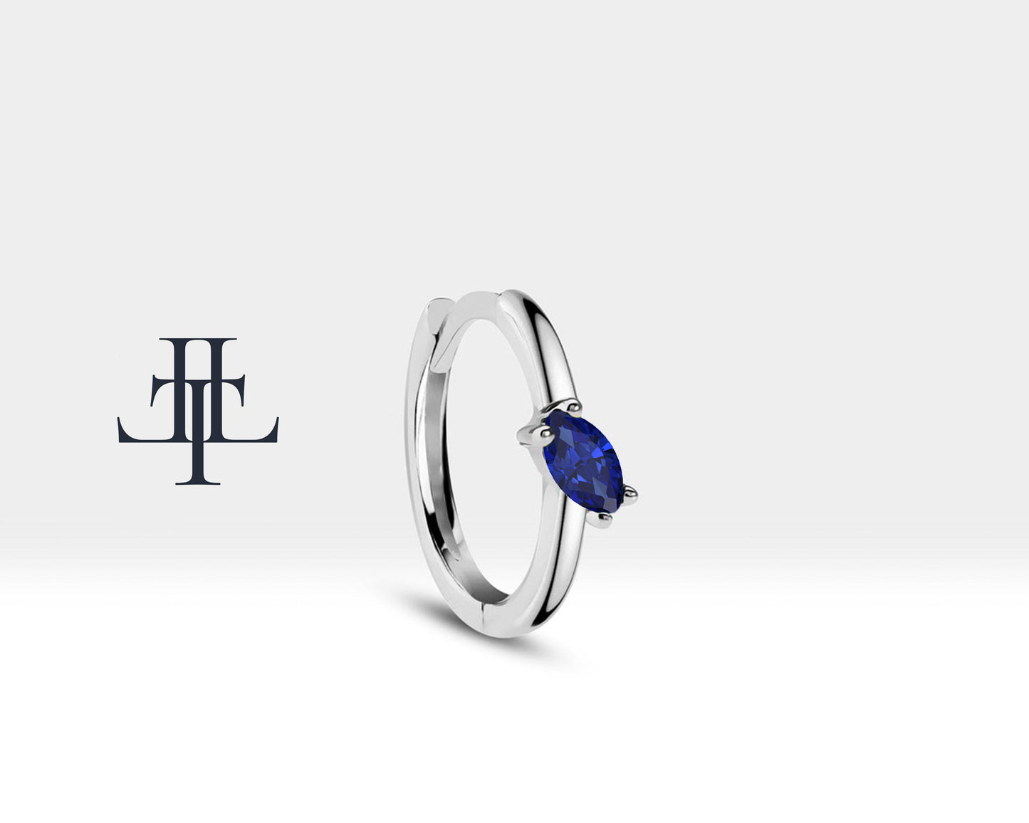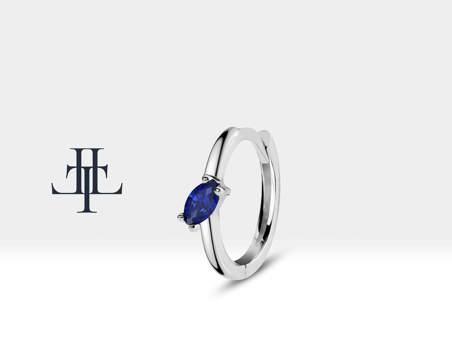 Cartilage Hoop Marquise Cut Cross Standing Sapphire Earring Single Earring 14K