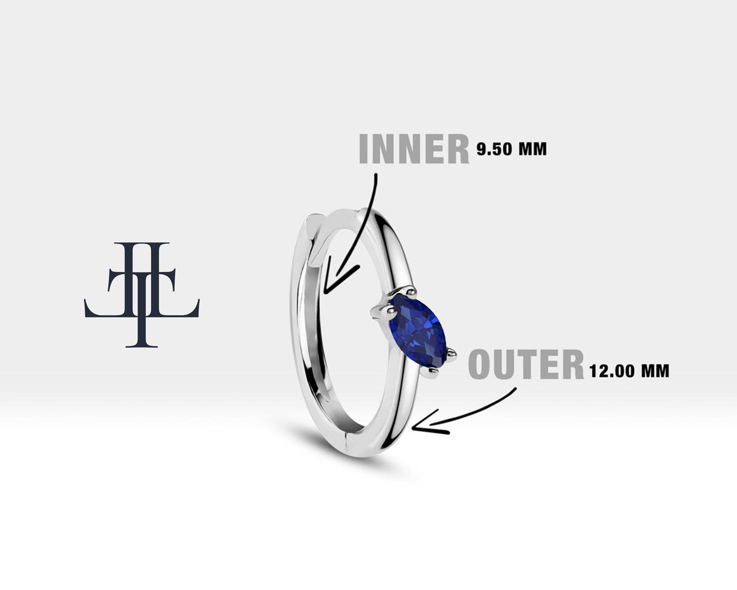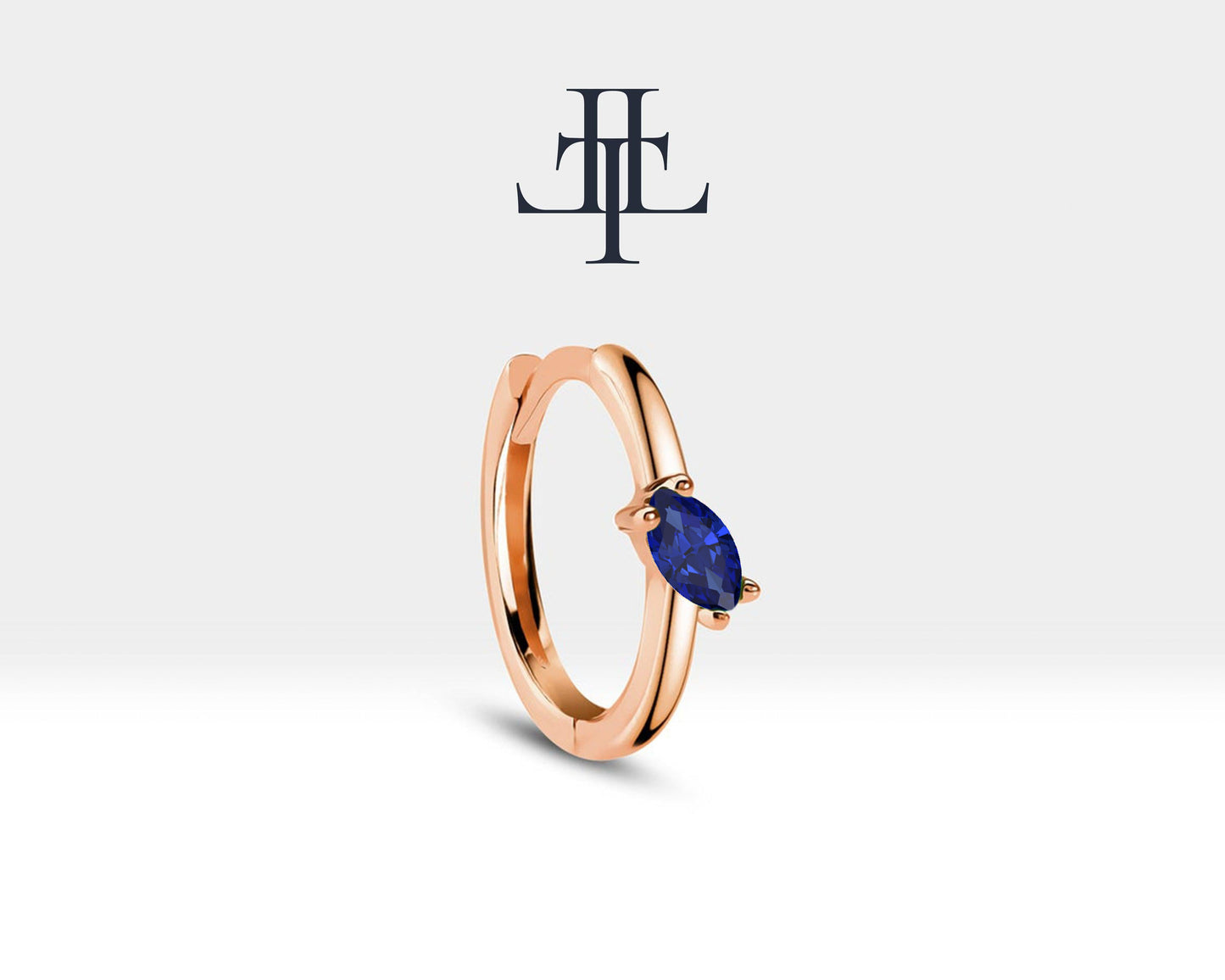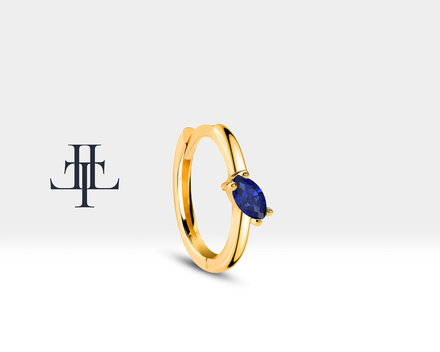 Cartilage Hoop / Marquise Cut Cross Standing Sapphire Earring/Single Earring/ 14K Yellow- White- Rose Solid Gold/ 12 mm Earring