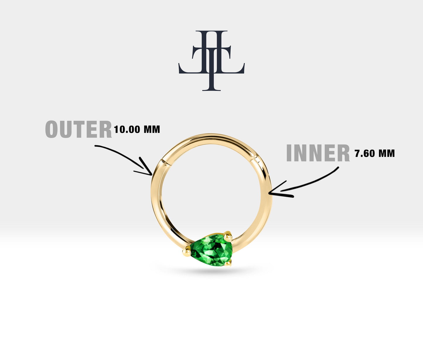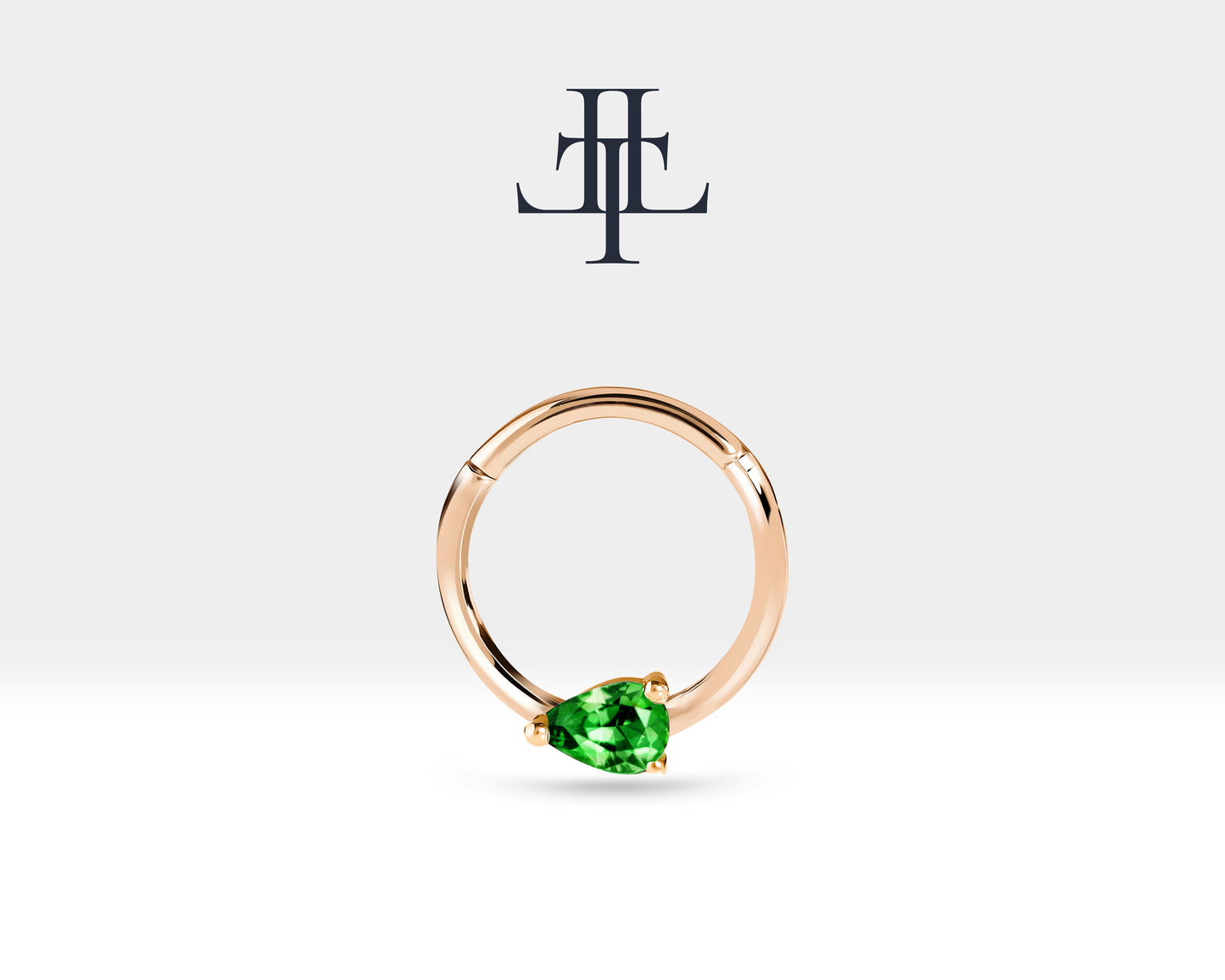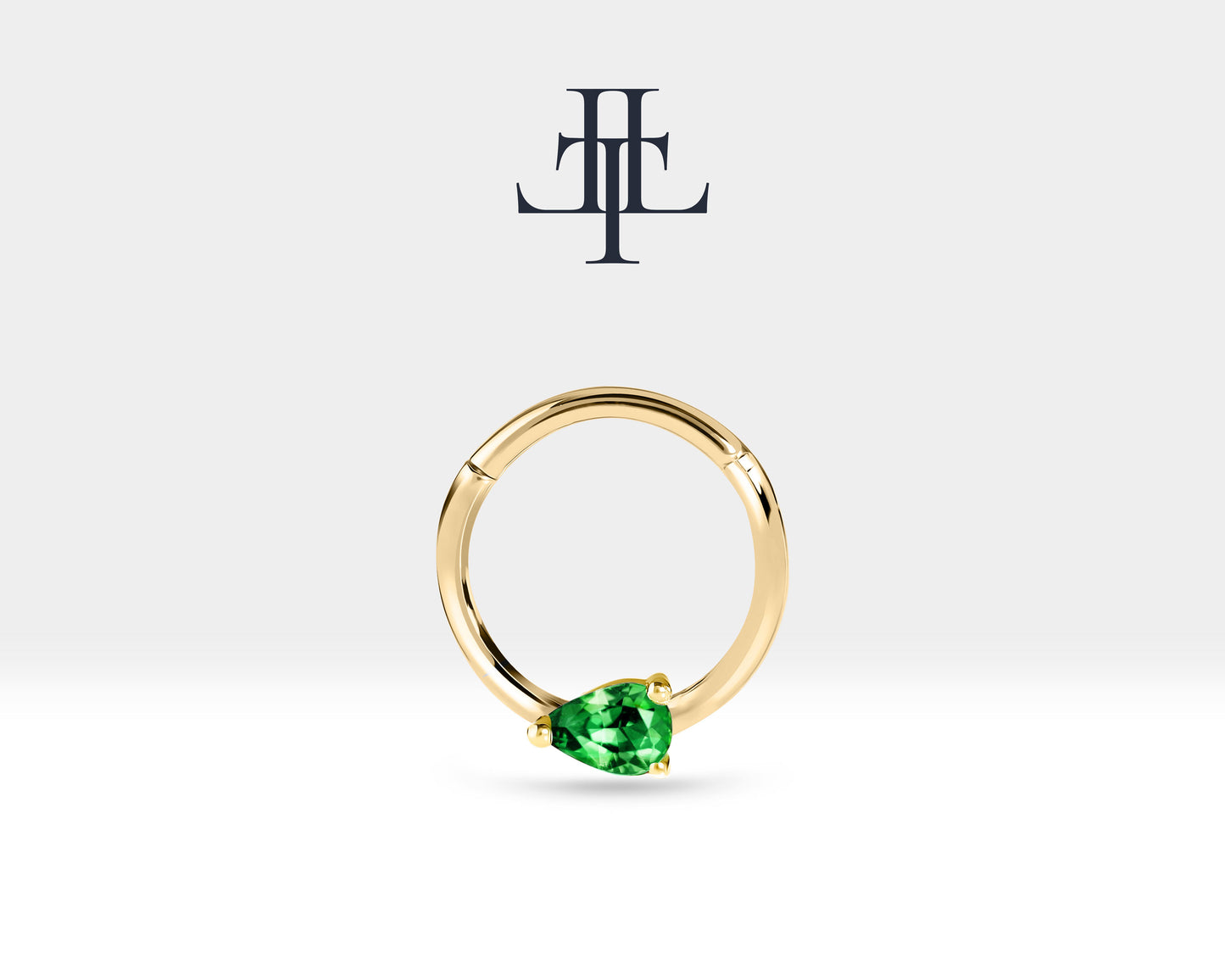 Cartilage Hoop Pear Cut Emerald Clicker Single Earring 14K Gold