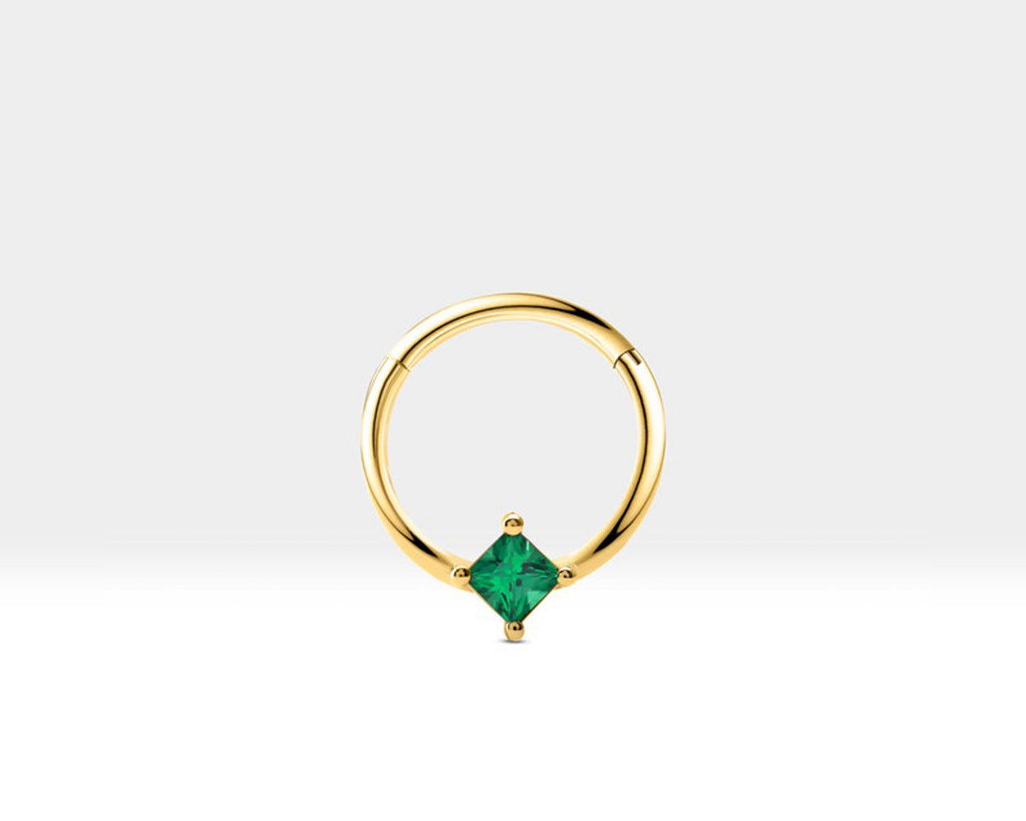 Cartilage Hoop , Princess Cut Emerald Clicker, Single Earring, 14K Solid Gold