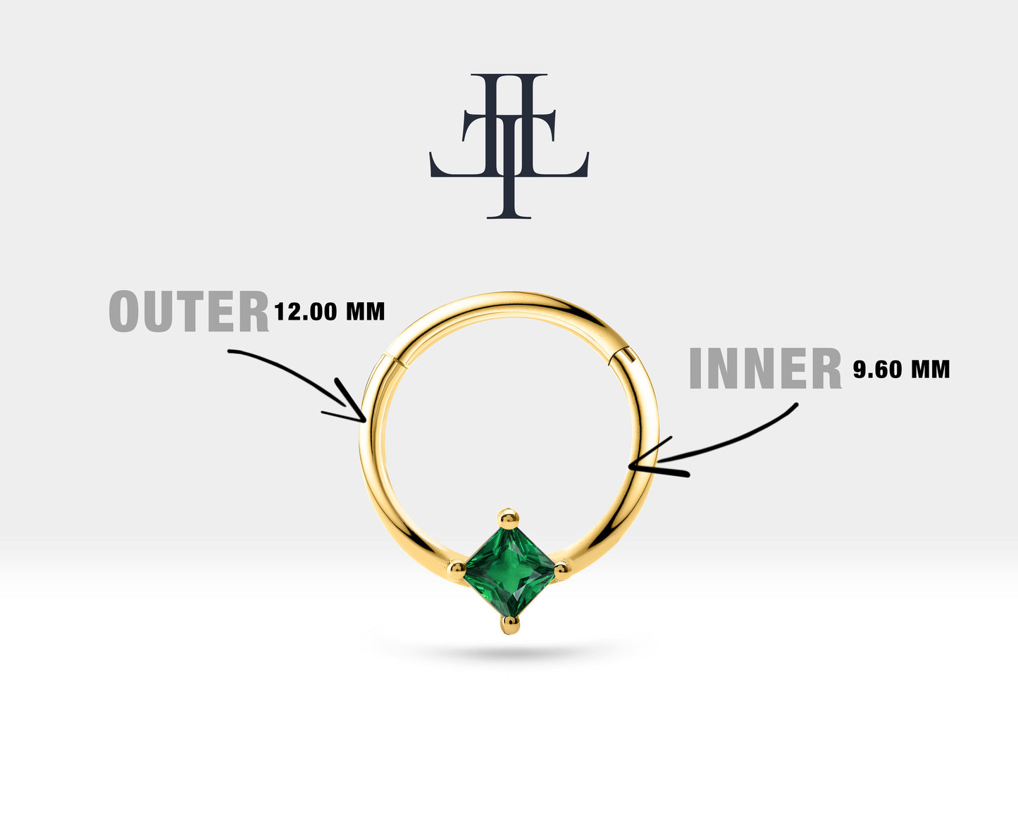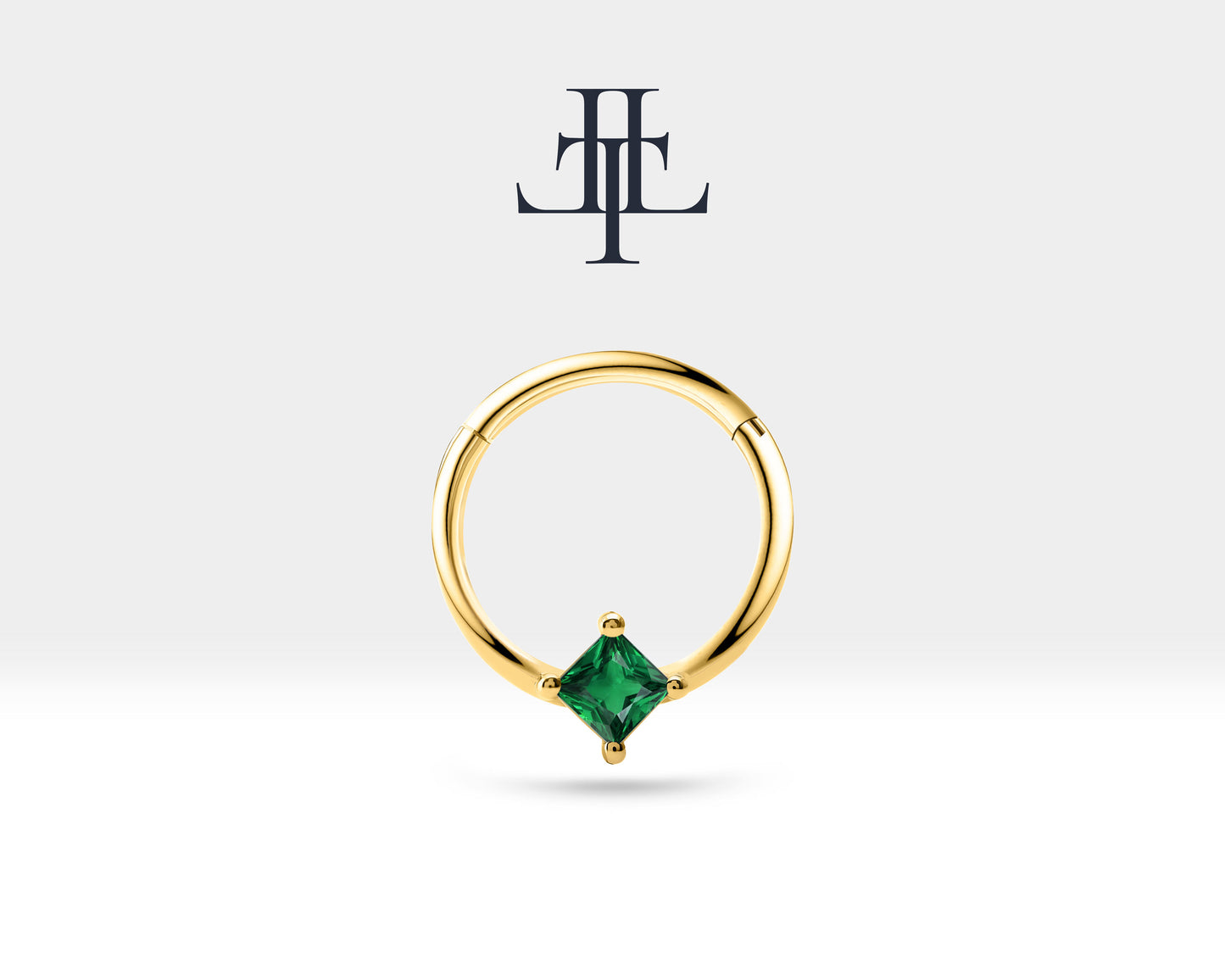 This princess cut natural emerald design product is a cartilage clicker piercing.Using natural and pure emerald stone adds privilege to the product. It can be preferred for cartilage,conch,rook, daith and tragus.