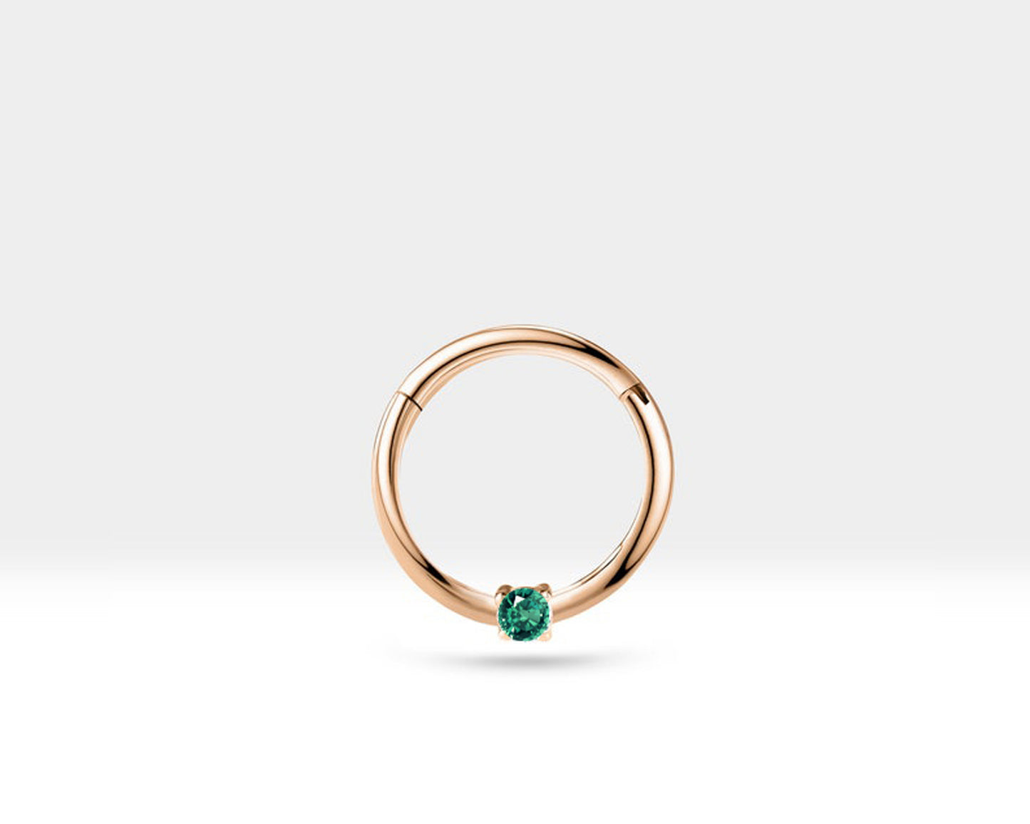 Cartilage Hoop Round Cut Green Garnet Clicker Piercing , Single Earring , 14K Solid Gold