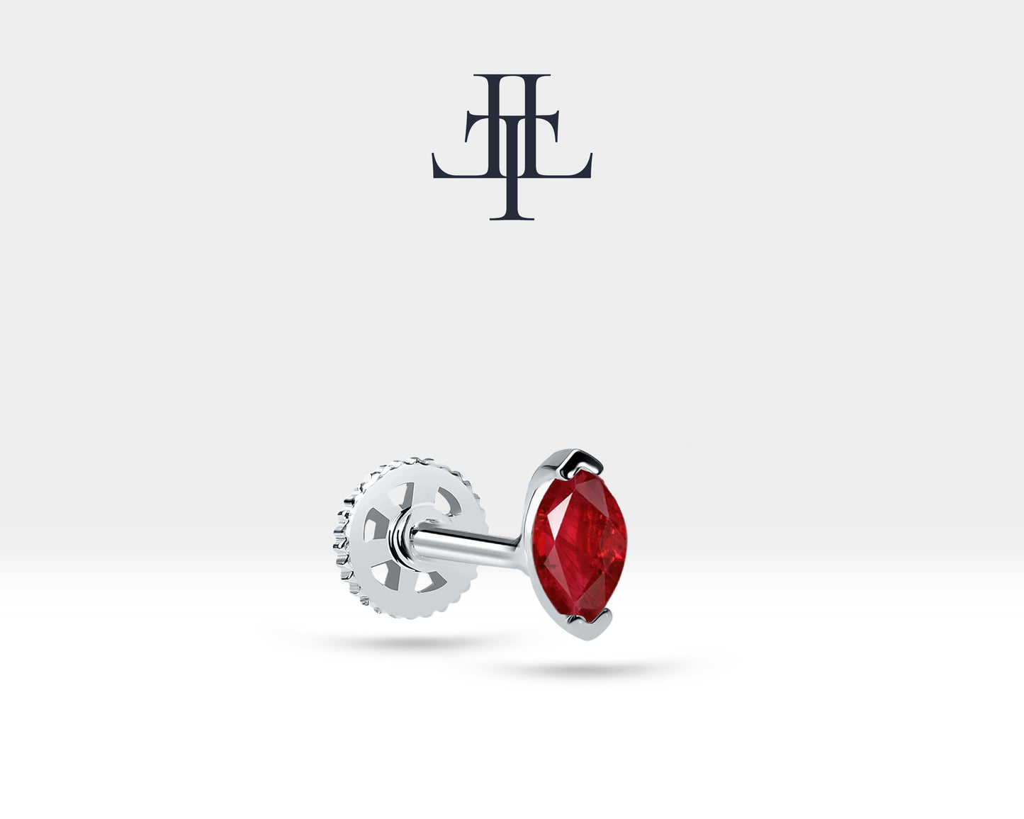 Cartilage Tragus Piercing Design 3 Size Marquise Cut Ruby Piercing