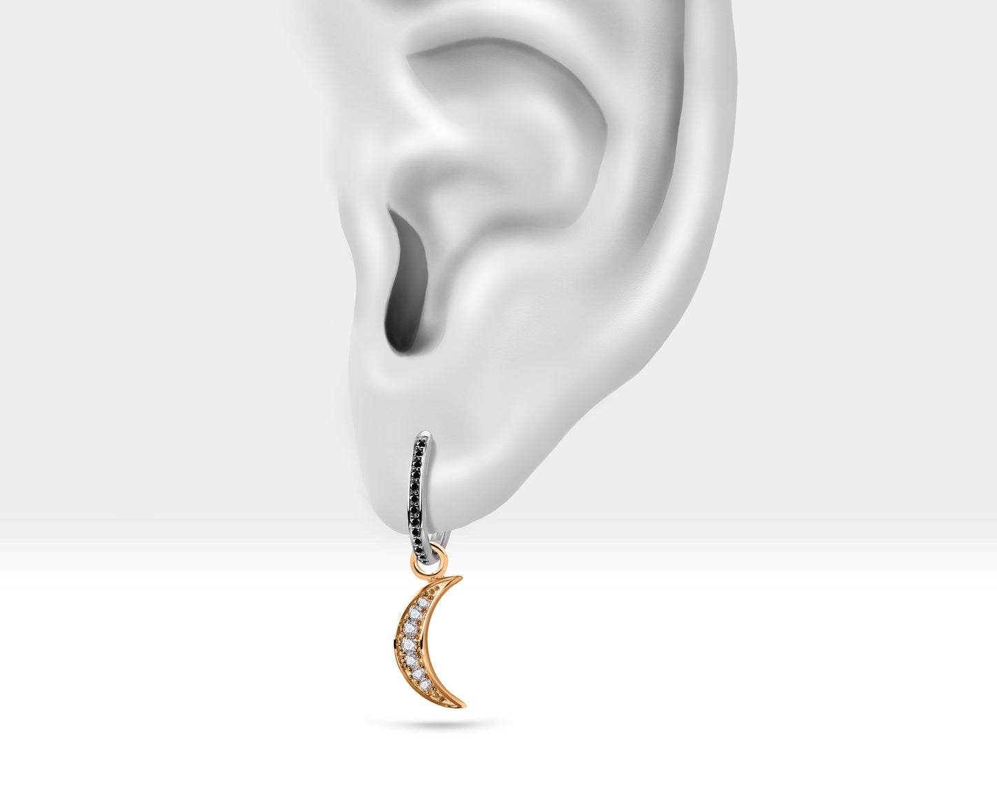This sparkling moon design product is a dangle lobe earring.Using natural diamond stone adds privilege to the product. It can be preferred for earlobe or cartilage.