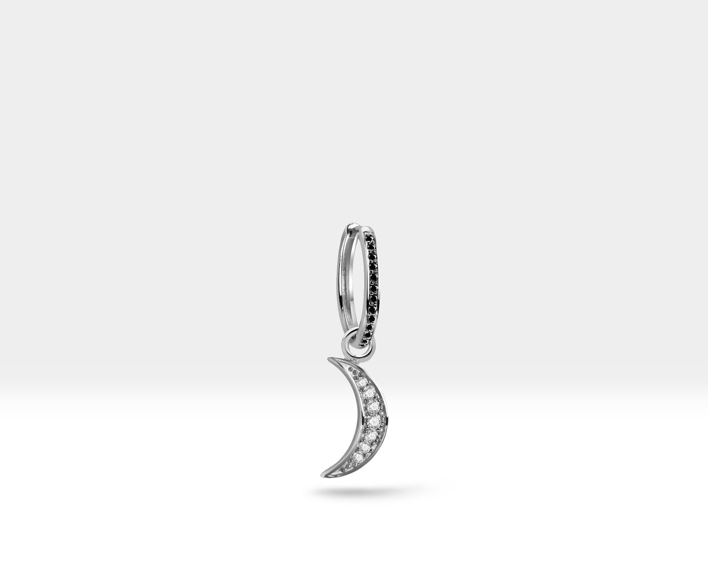 Home > > Dainty Moon Hoop Earrings,Dangle Diamond Hoop Earrings,14K Yellow Solid Gold Tiny Charm