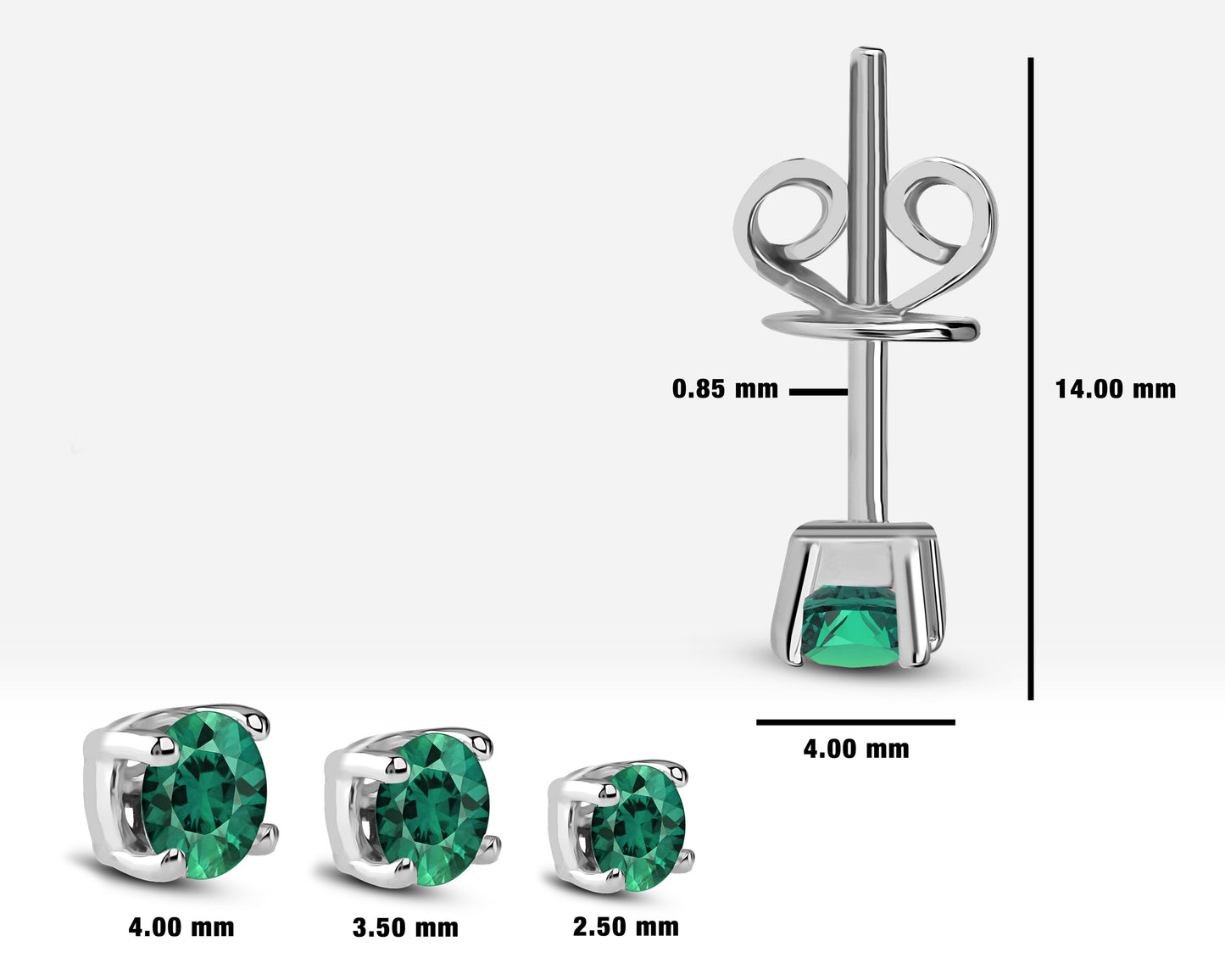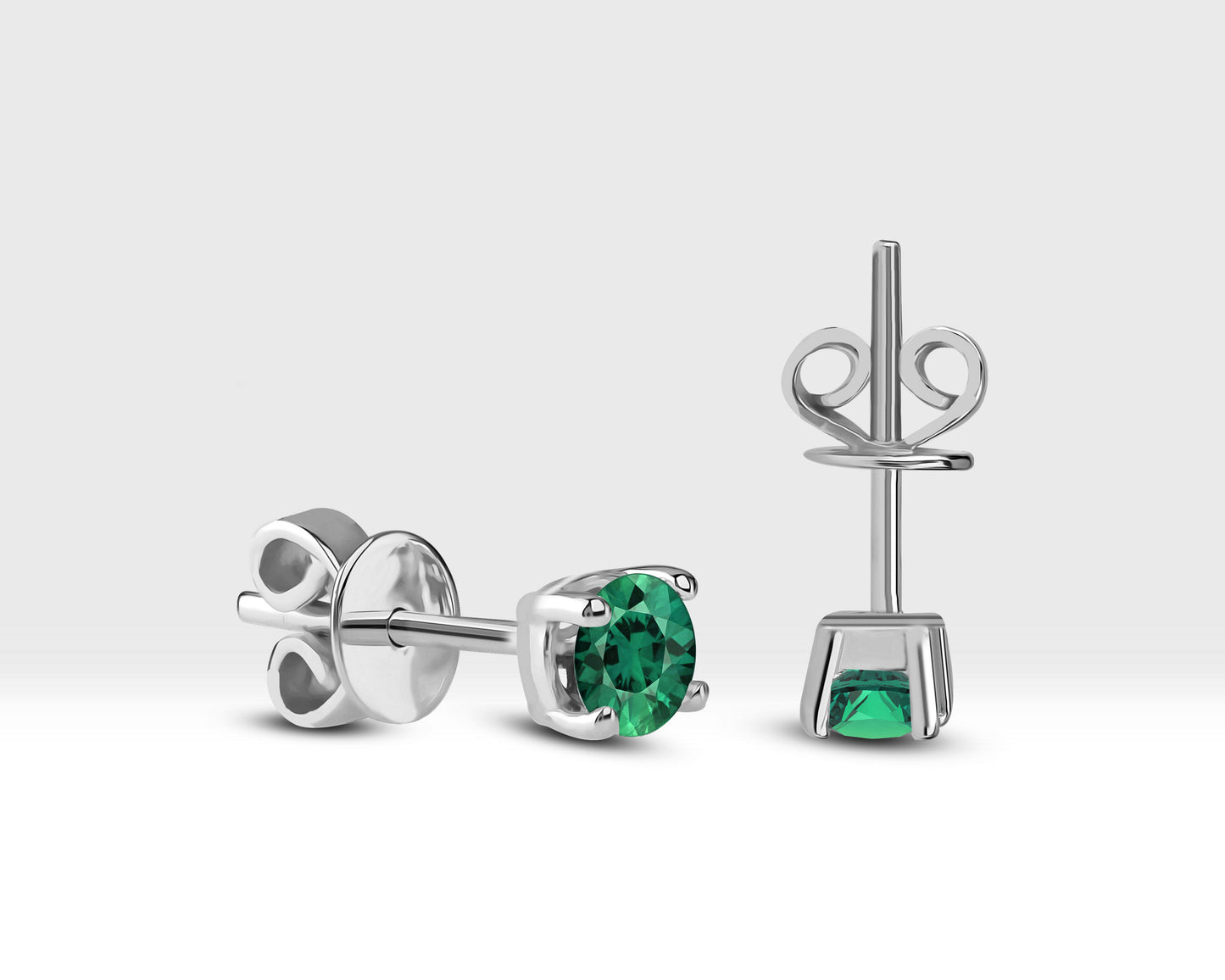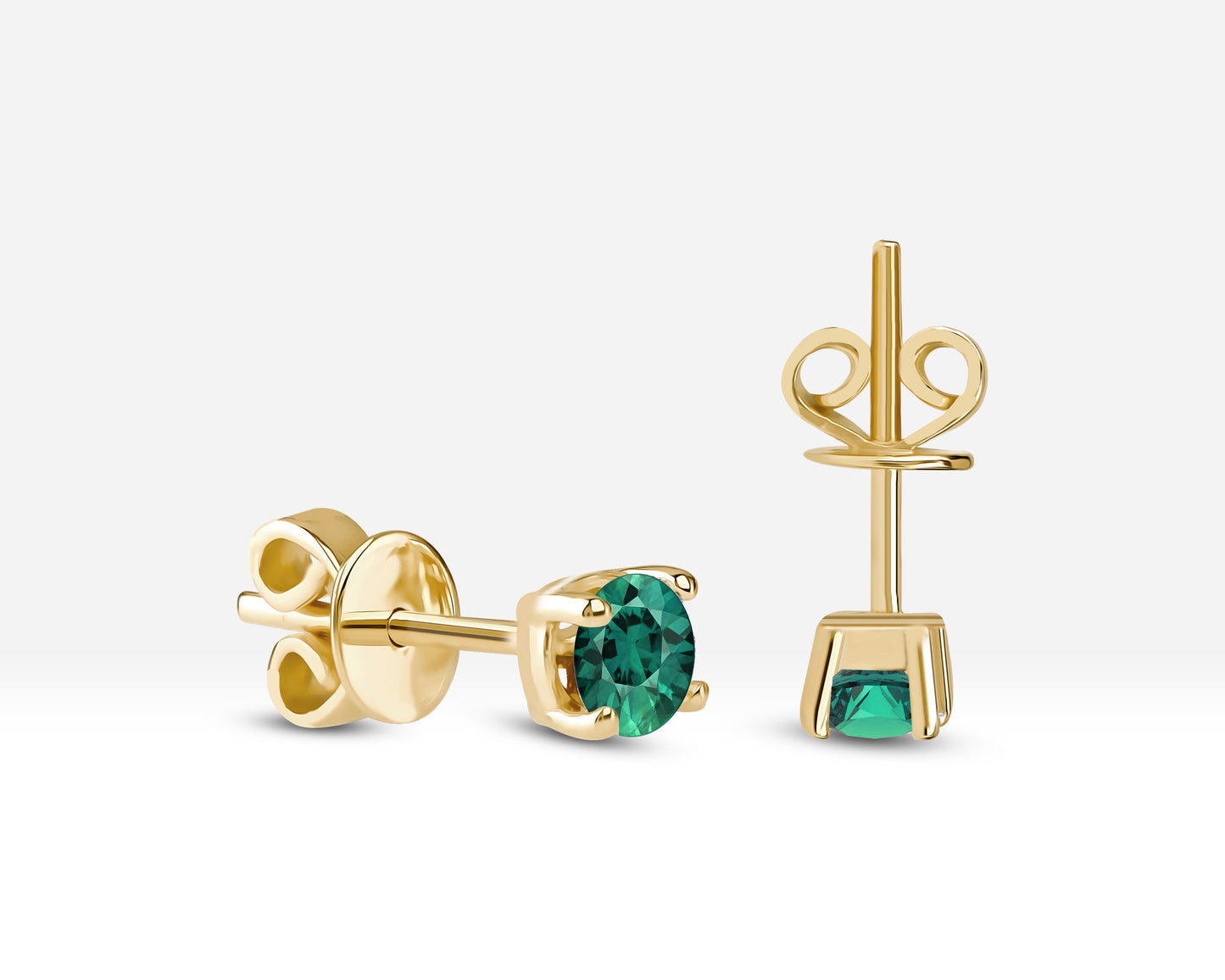 Emerald Stud Earrings in 14K Solid Gold , Solitaire Emerald Earrings