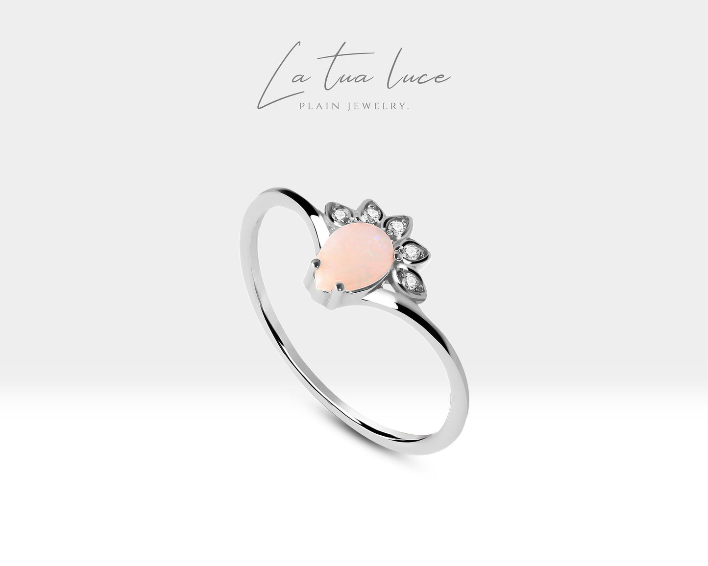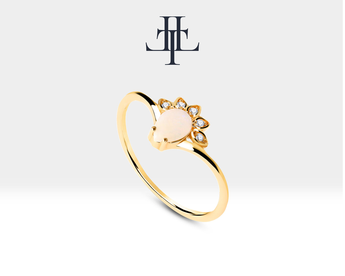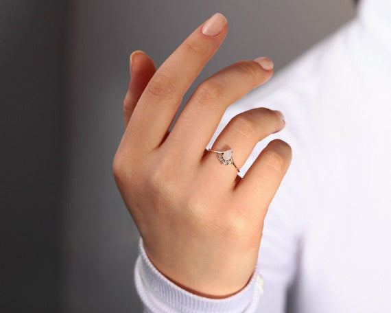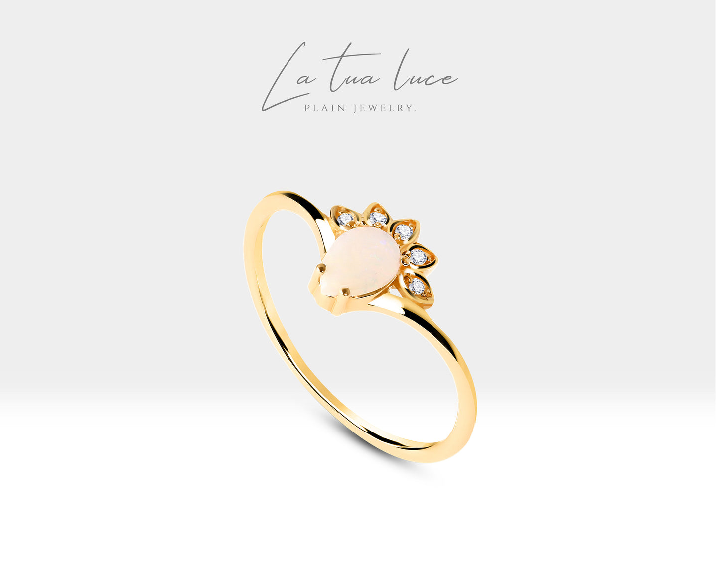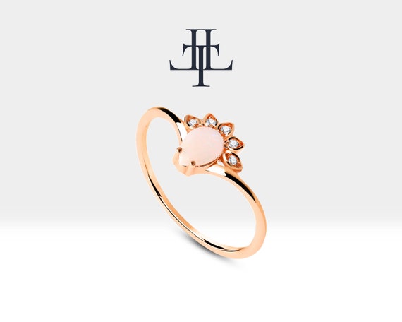 Gold 14K Opal and Diamond Minimal Design Ring Valentines Gift