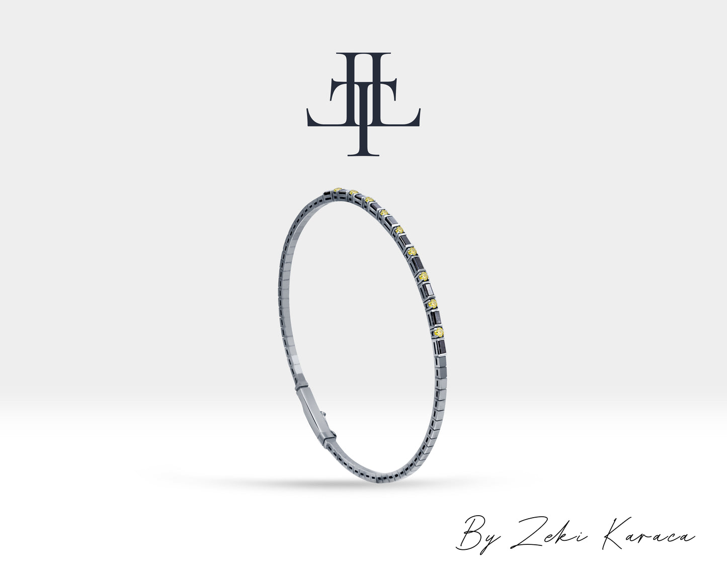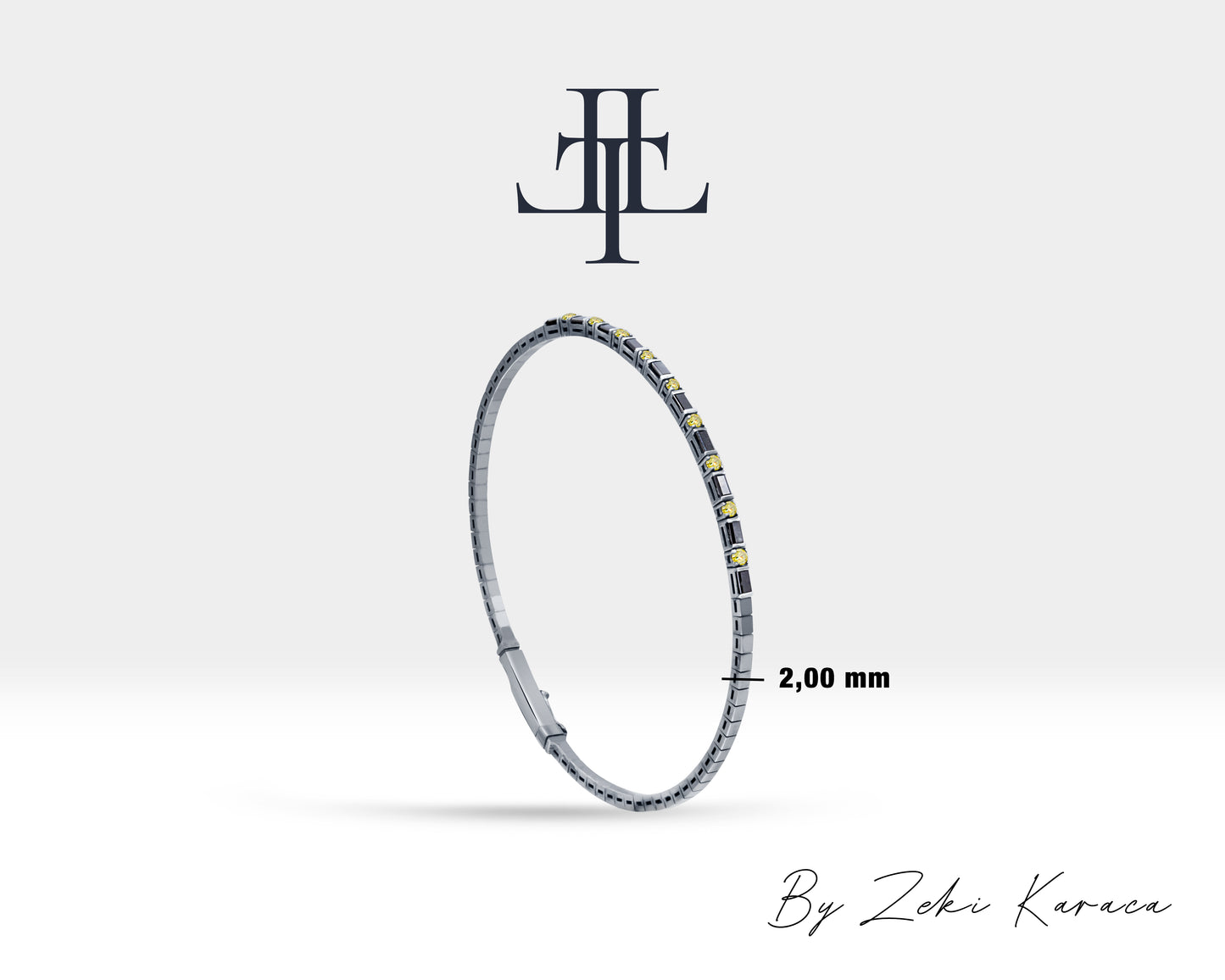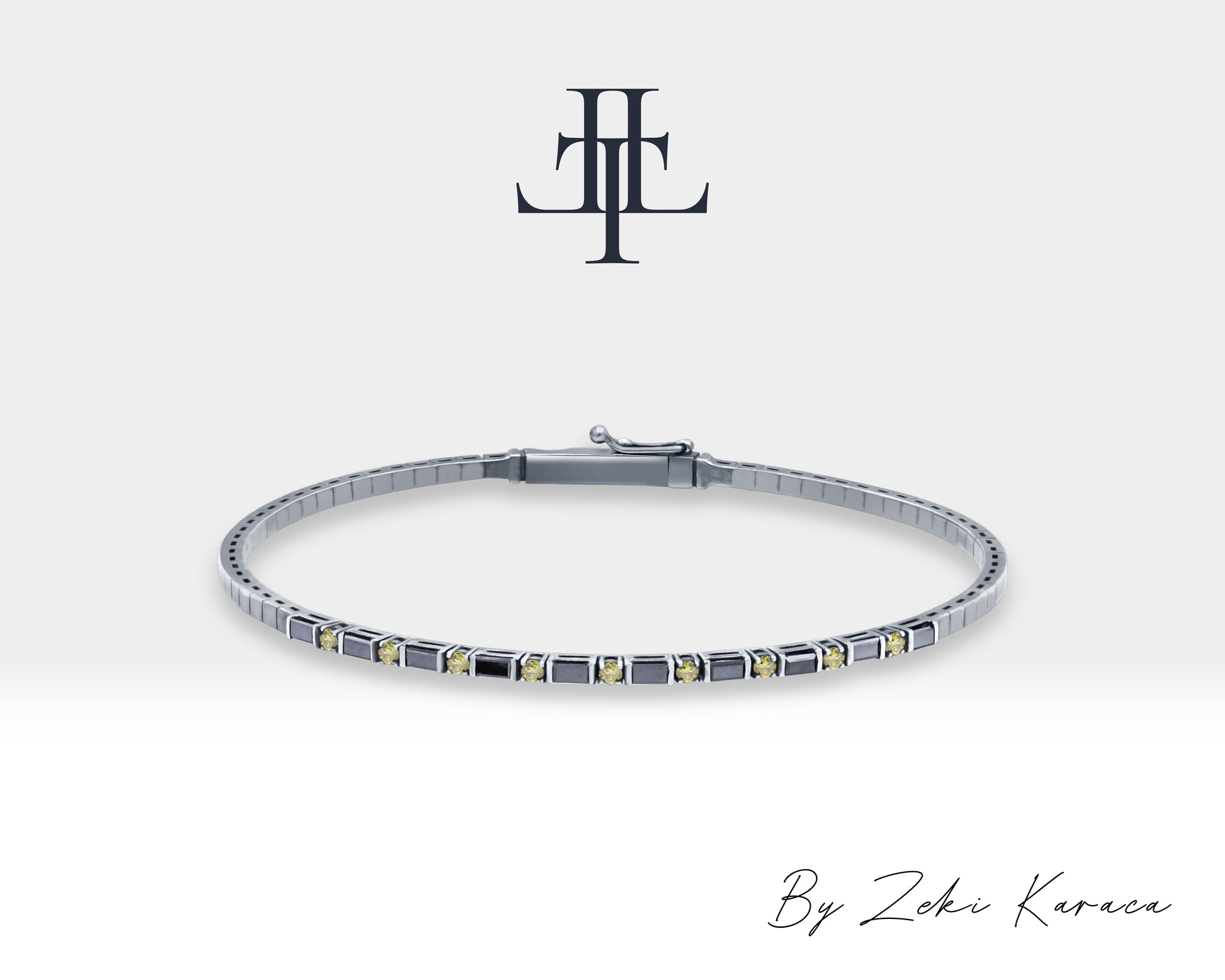 Handmade Silver Bracelet with Yellow Diamond and Black Diamond | ZB00025DB