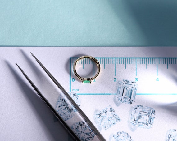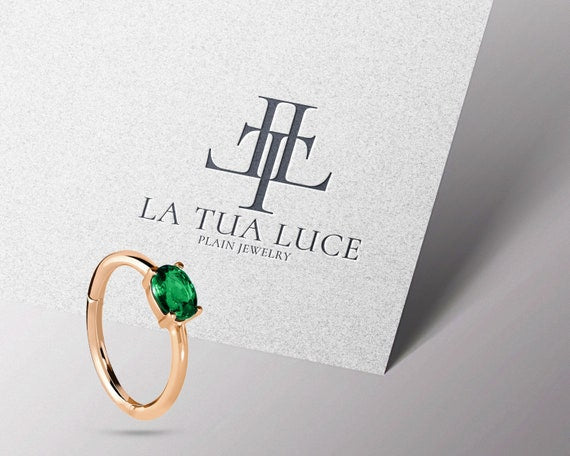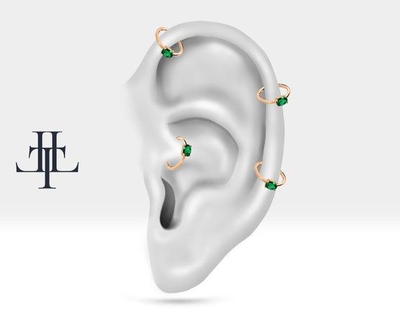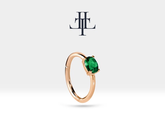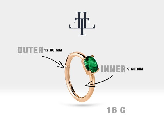 Cartilage Hoop Oval Cut Emerald Earring 14K Yellow White Rose Solid Gold ,16G