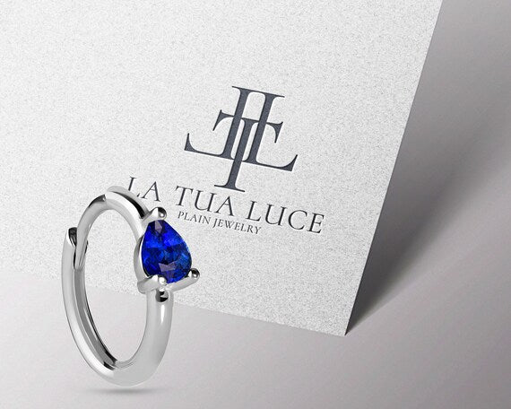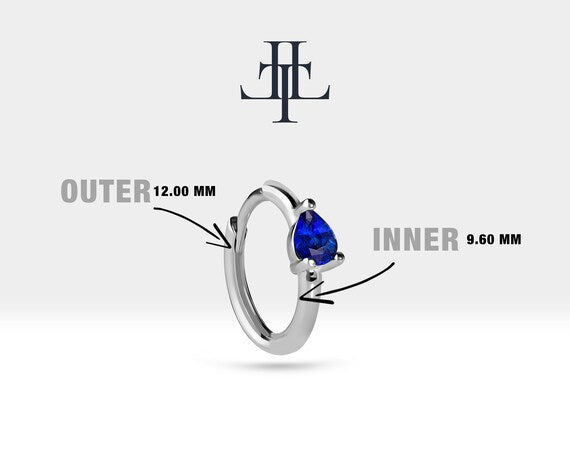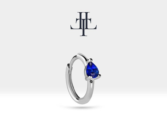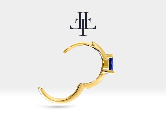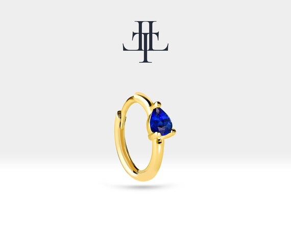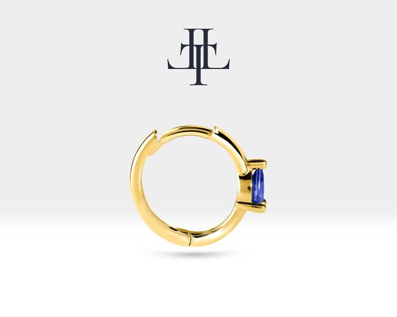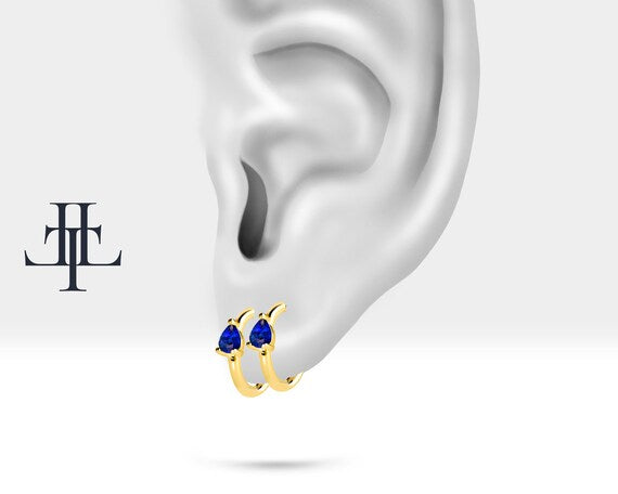 About this product: This gold hoop earrings are made of 14k gold and oval cut sapphire stones. Since we use natural sapphire, the color of the stone may differ. This earring for earlobe. It's a single earring.