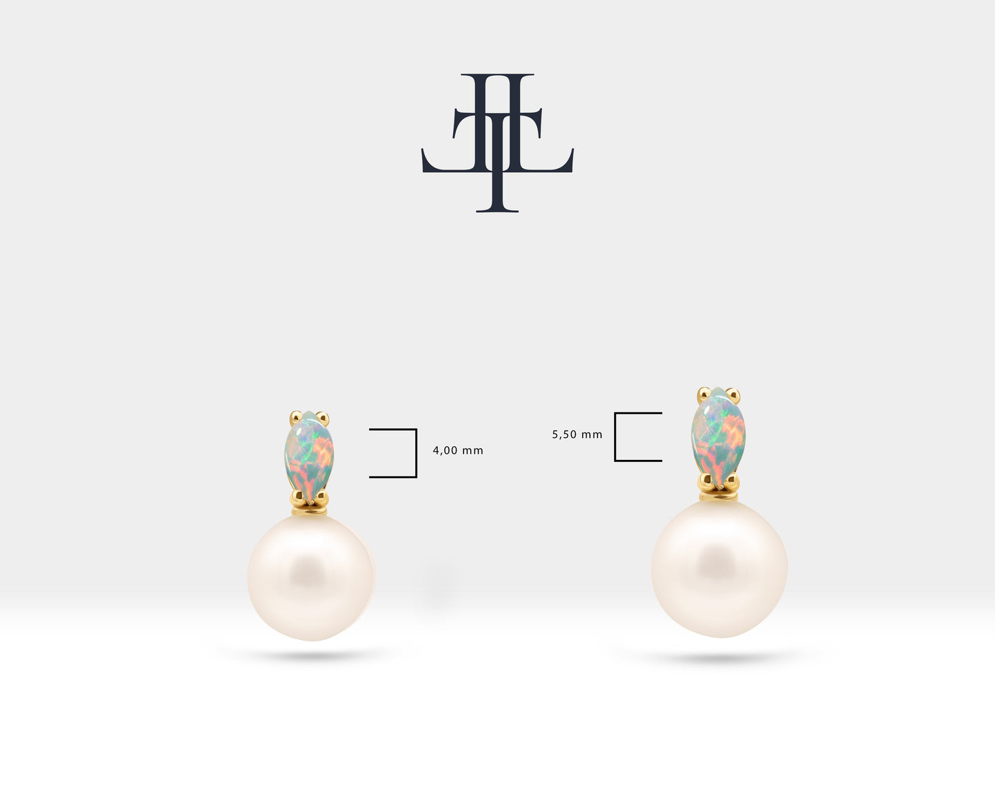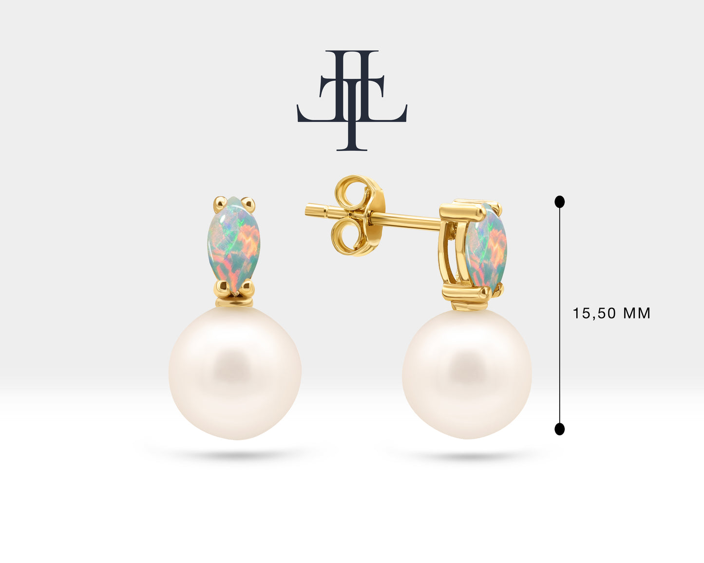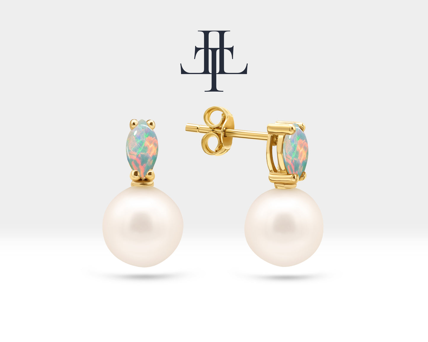 Home > > Pearl Earrings with Marquise Cut Opal Earring in 14K Solid Gold Stud Earrings for Women Wedding Jewelry