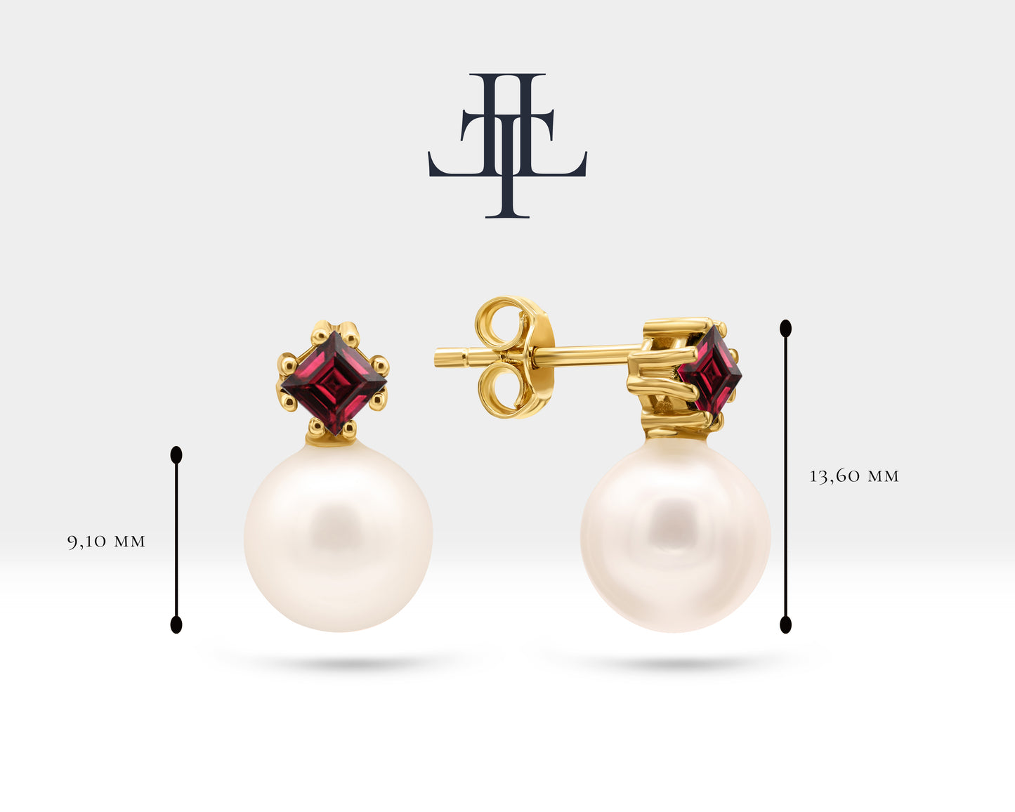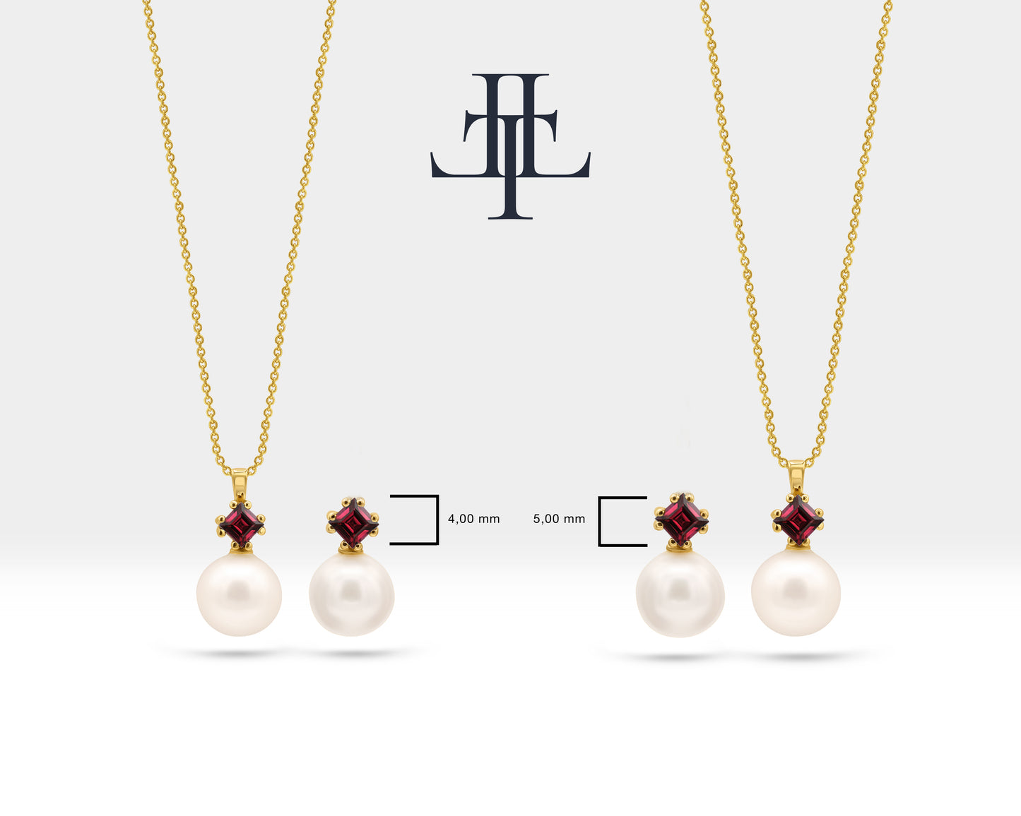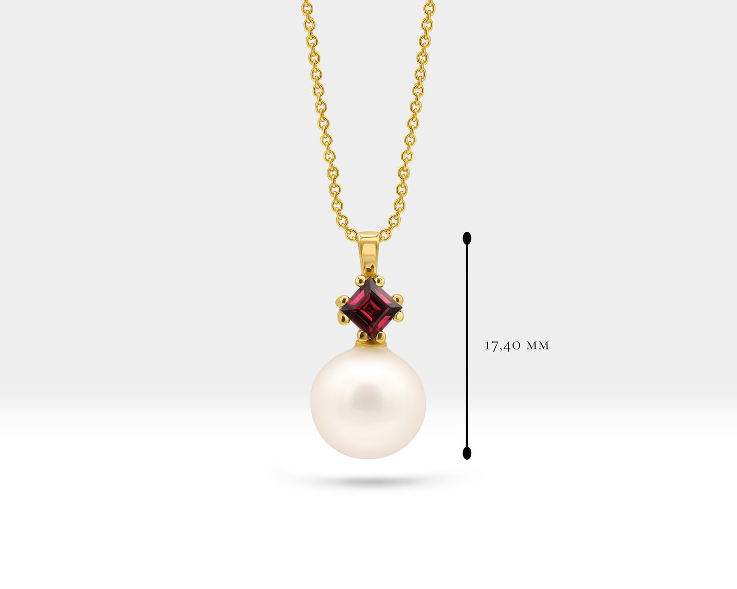 Pearl Set of Necklace and Stud Earrings in 14K Yellow Solid Gold Pearl and Princess cut Ruby Set for Wedding Jewelry Set for Brides
