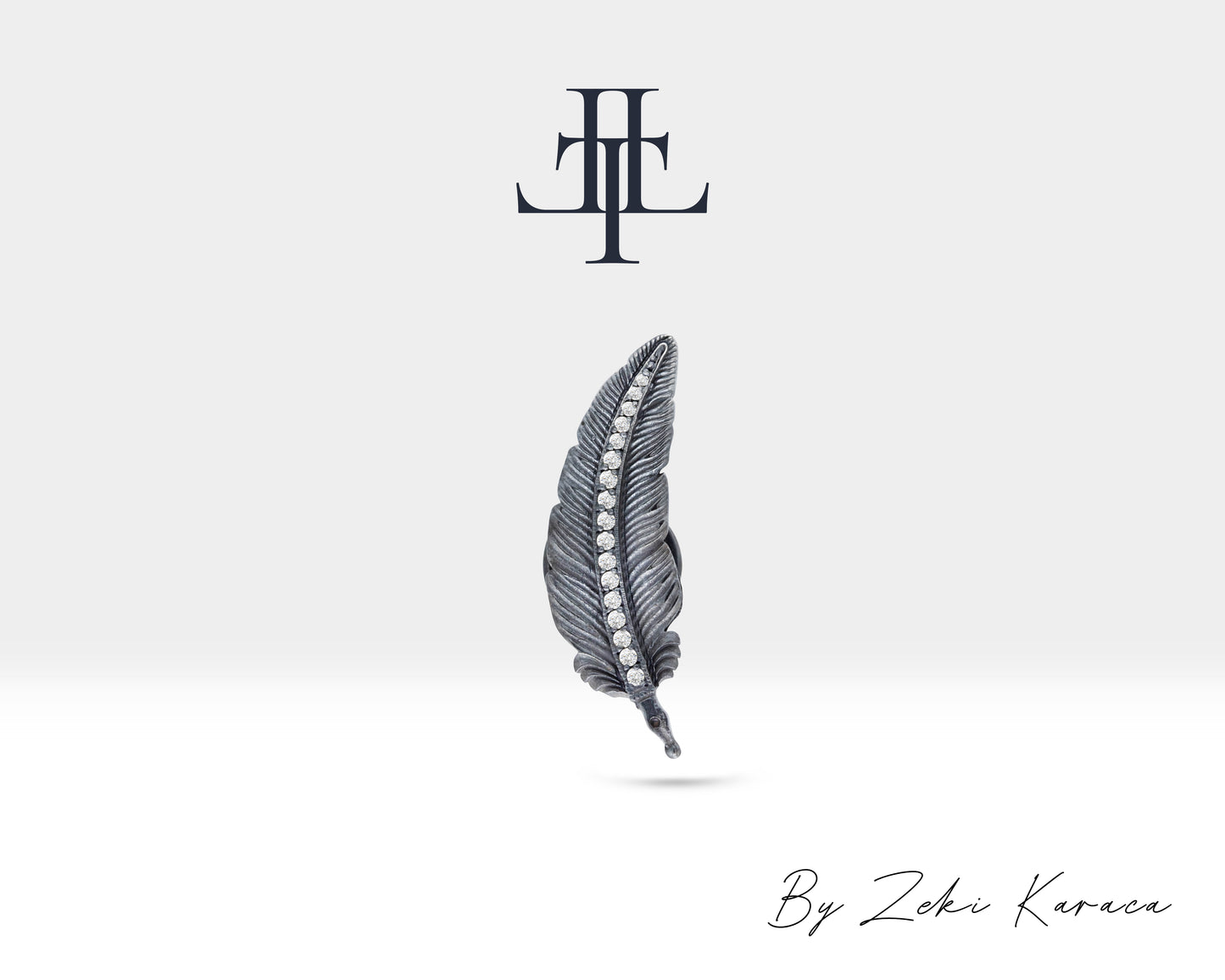 Quill Pen Design Pin Brooch with Diamonds, Unique Statement Jewelry, Special Gift, 925 Sterling Silver Scarf Brooch Dress Jewelry | LZ00005D
