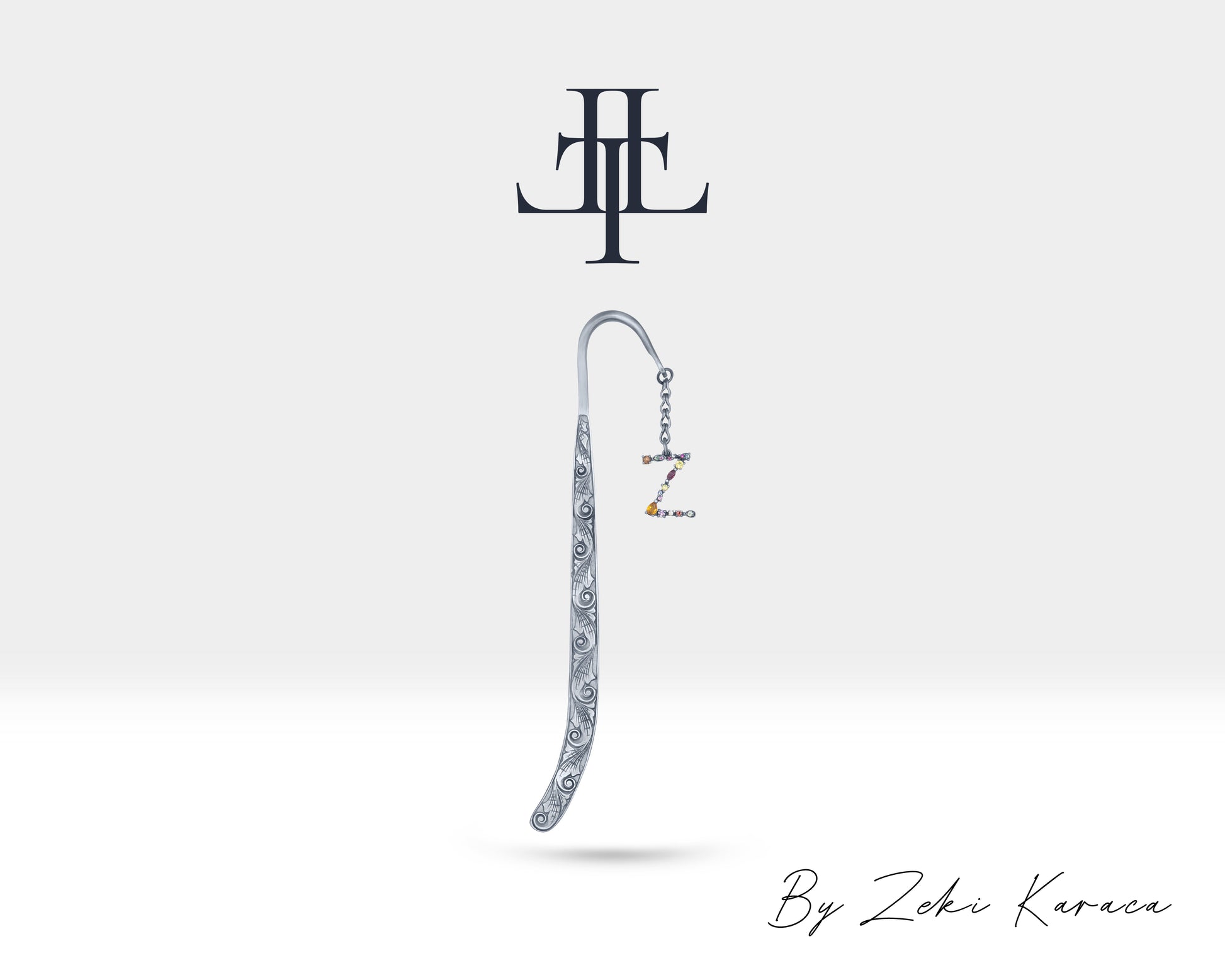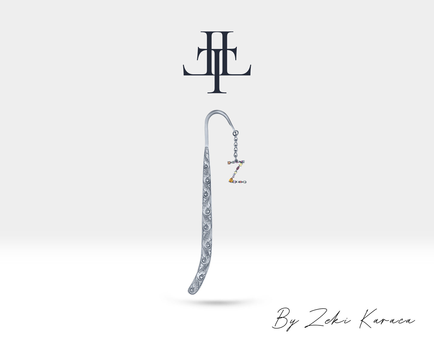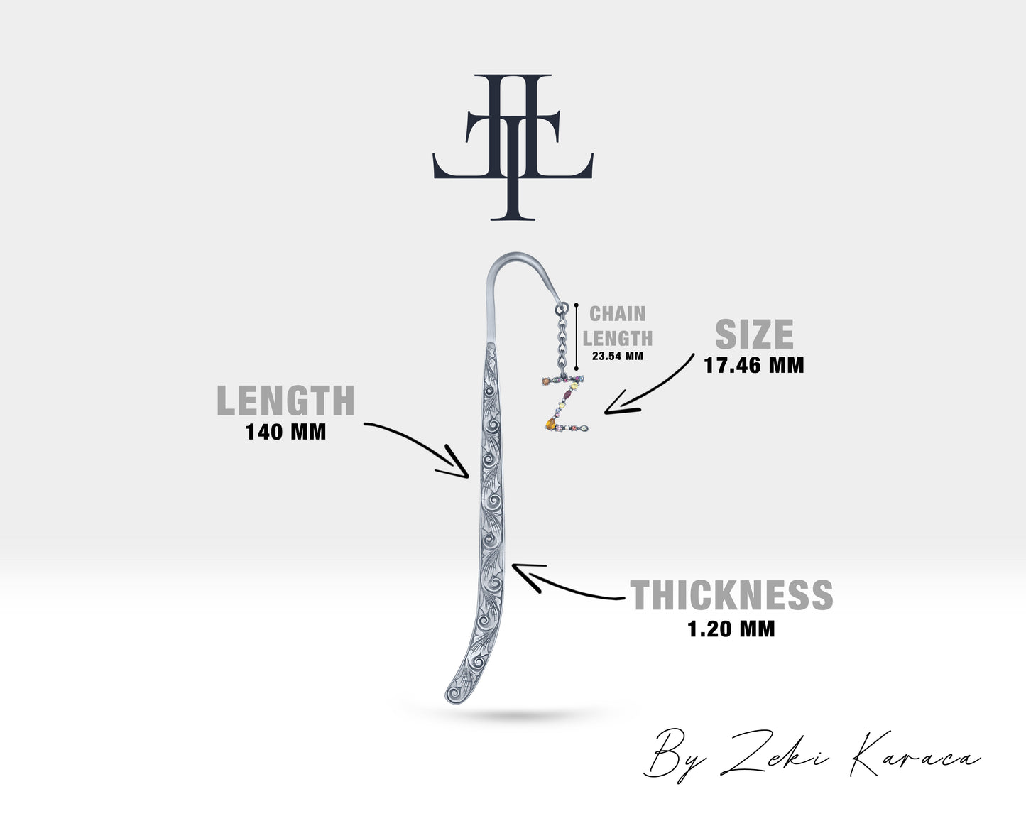 Silver Bookmark with Charm, Customizable Letter Bookmark with Colorful Sapphire, Handmade Unique Gift, Gift for Book Lovers | LZ00034S