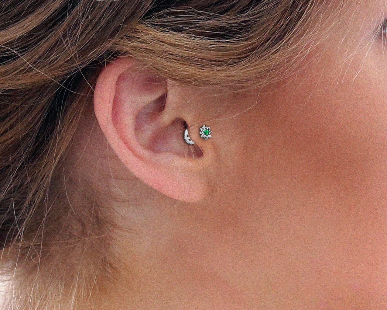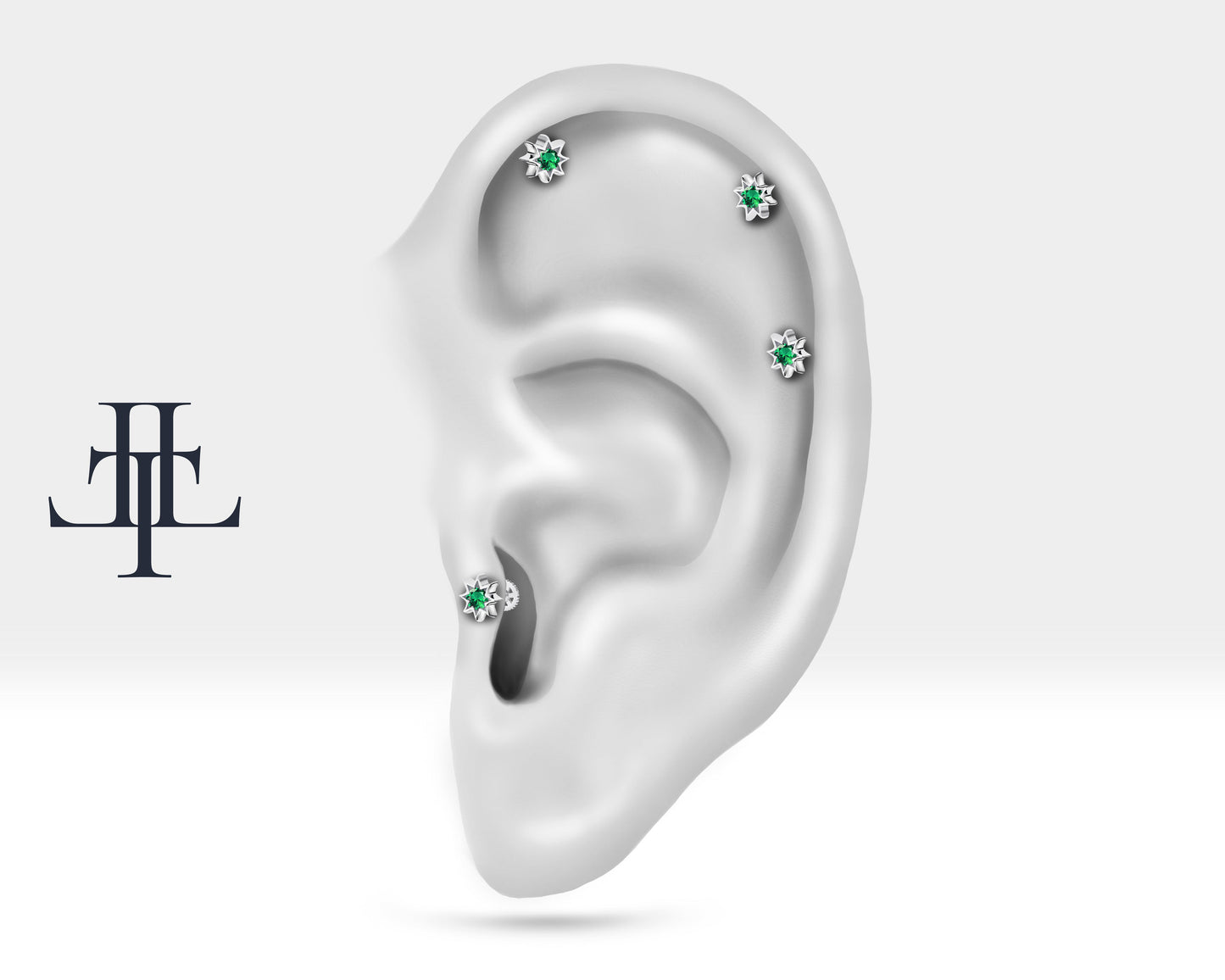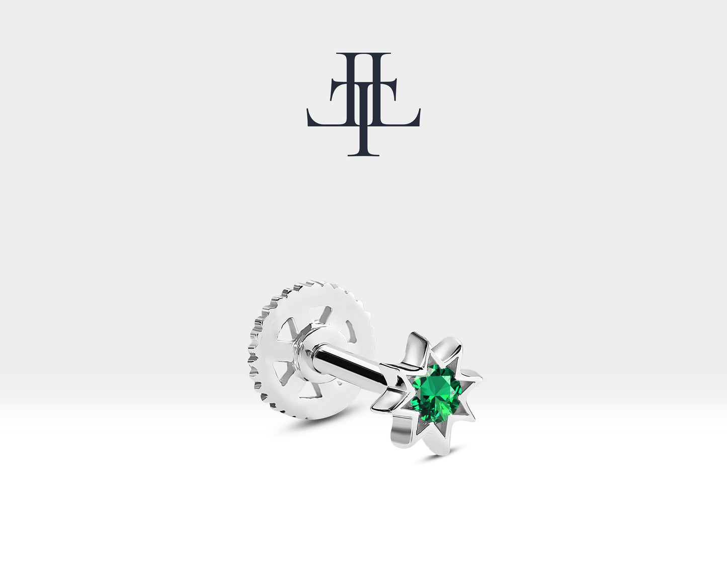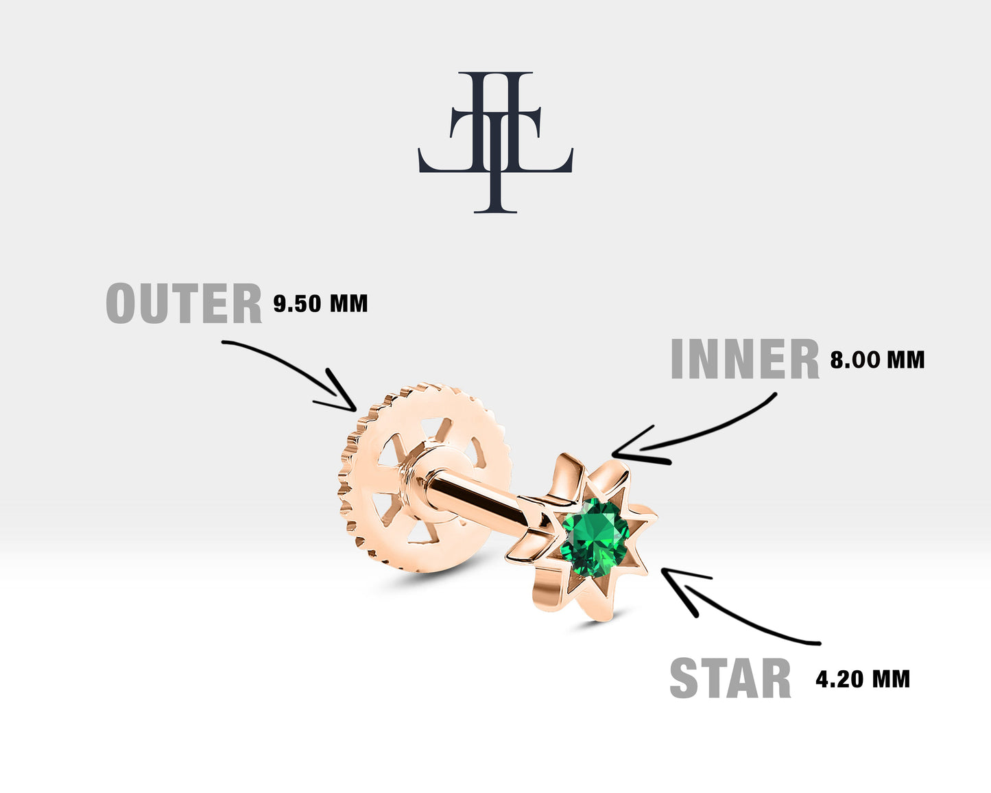 Star Design Round Cut Green Garnet Cartilage and Tragus Piercing 16 G/1.2 mm