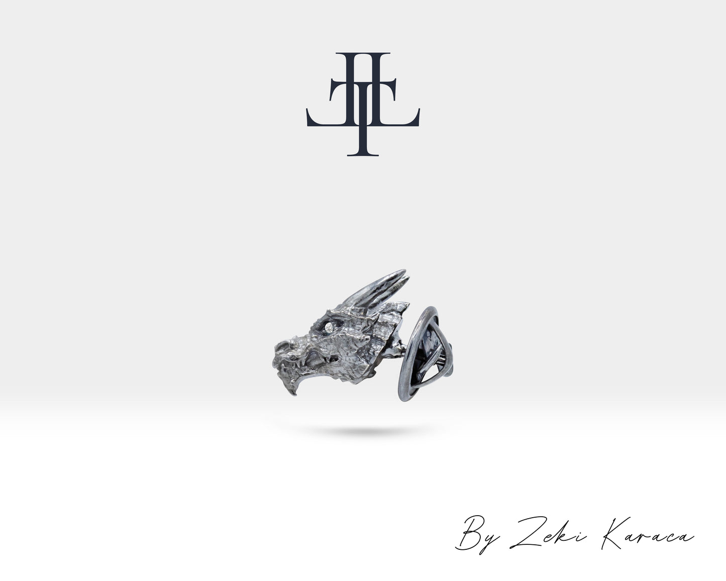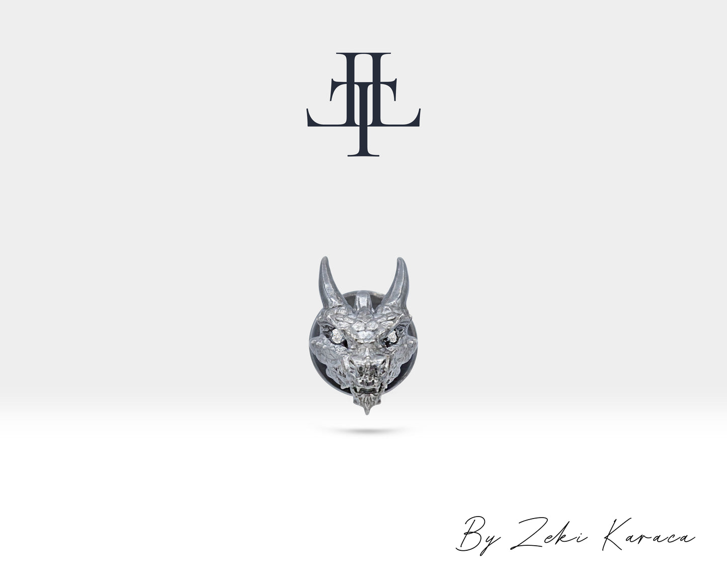 Sterling Silver Dragon Design Pin Brooch with Natural Diamond, Unique Statement Jewelry, Gift for Her, Scarf Dress Brooch | LZ00011D
