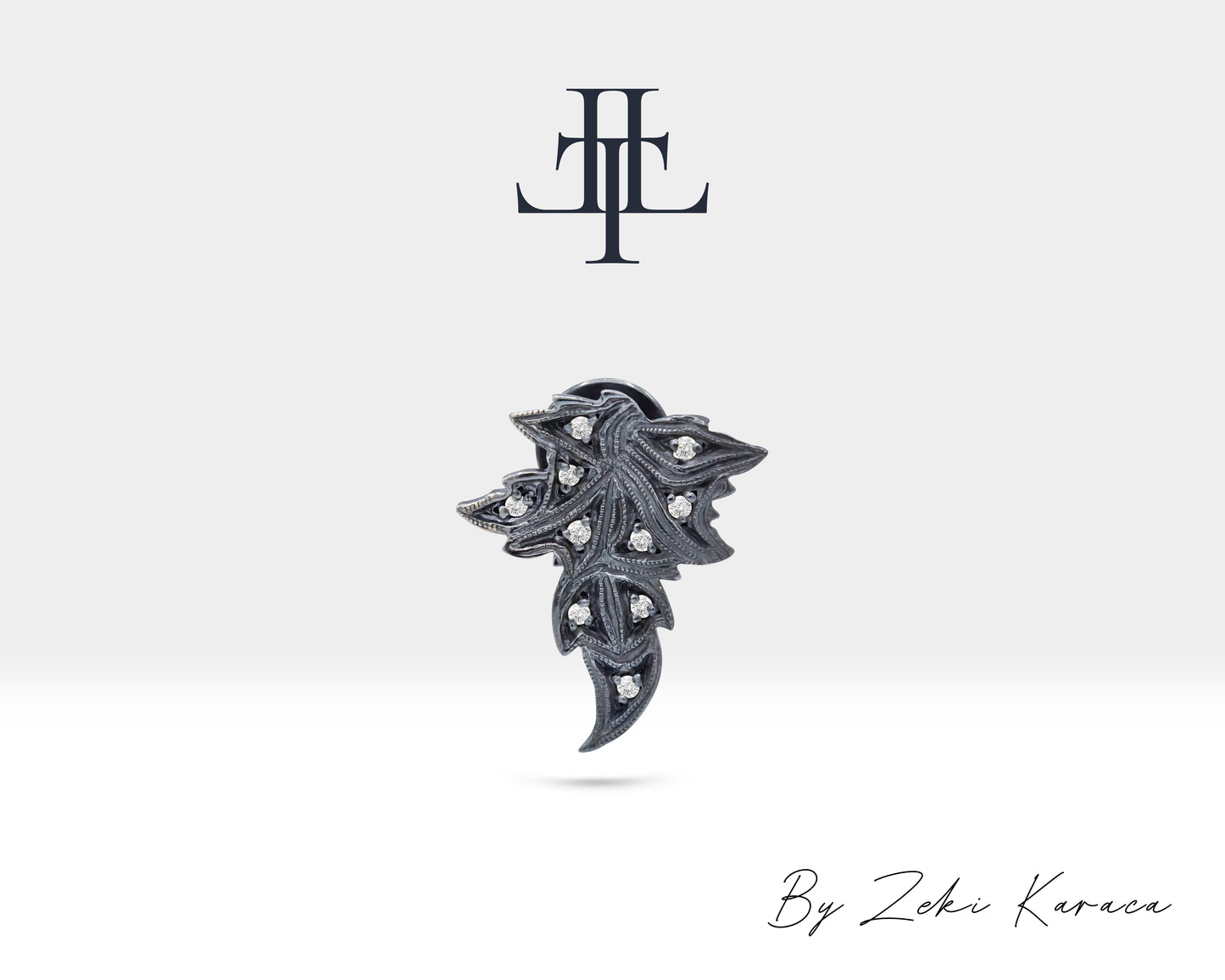 Sterling Silver Leaf Design Pin Brooch with Multi Stone Diamond,Unique Statement Jewelry, Gift for Mother, Foulard Dress Brooch | LZ00007D