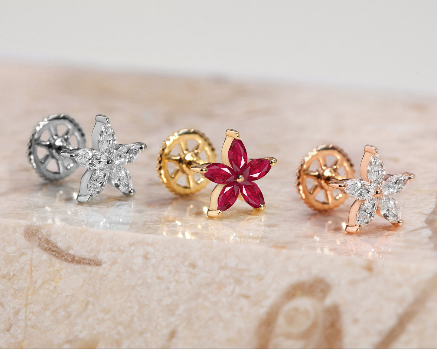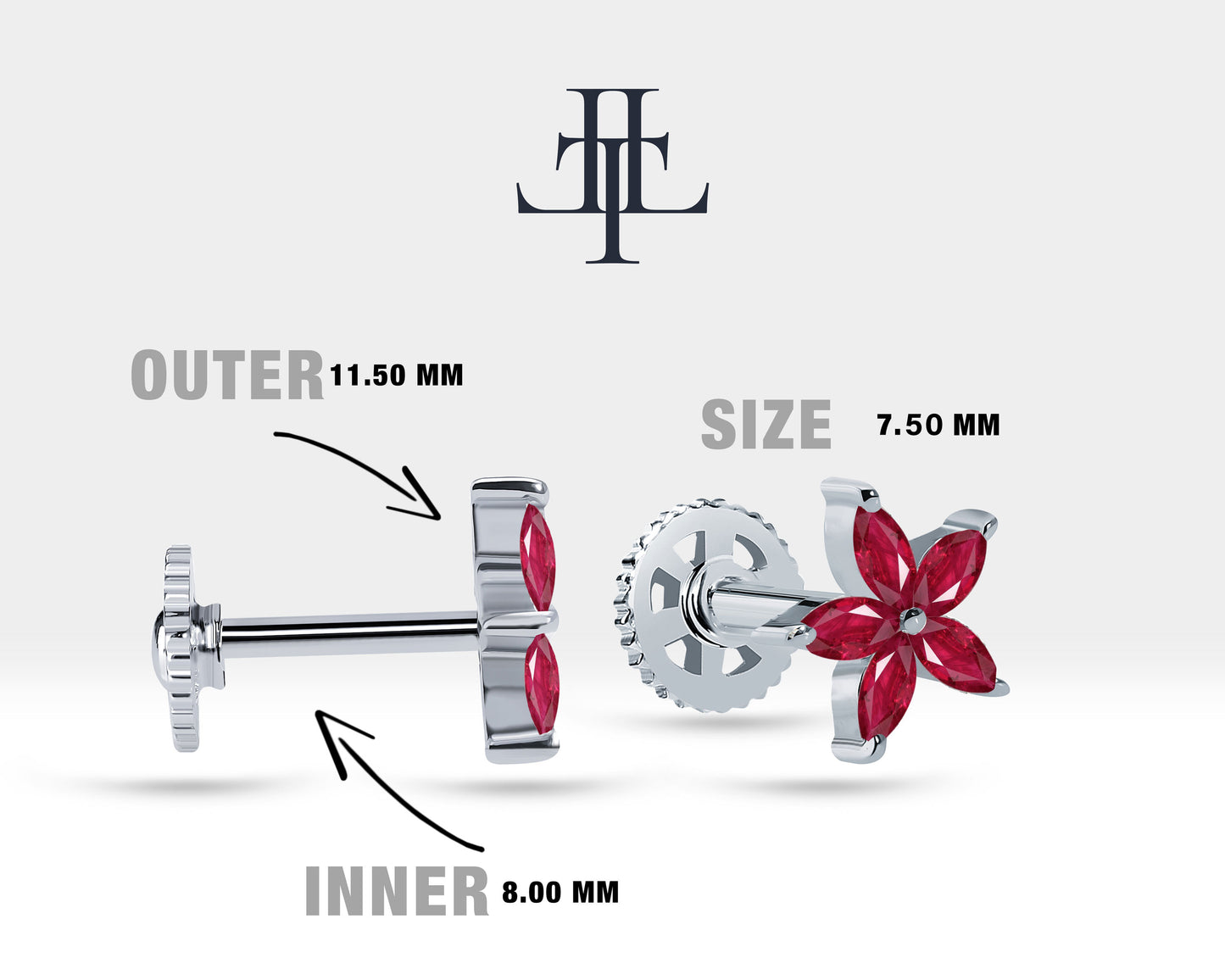 This sparkling marquise cut ruby design product is a cartilage piercing.Using natural ruby stone adds privilege to the product.It can be preferred for rook, daith and tragus.