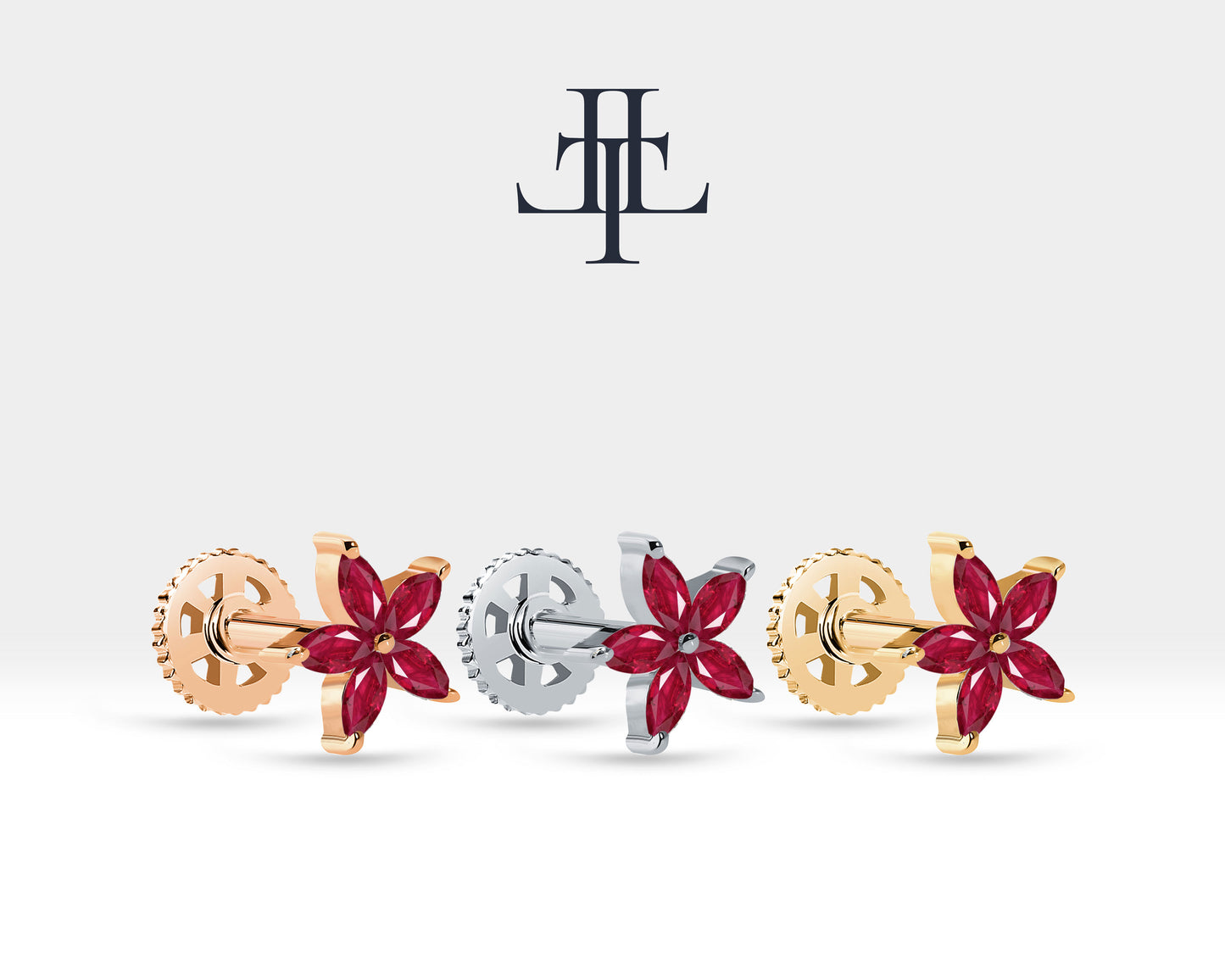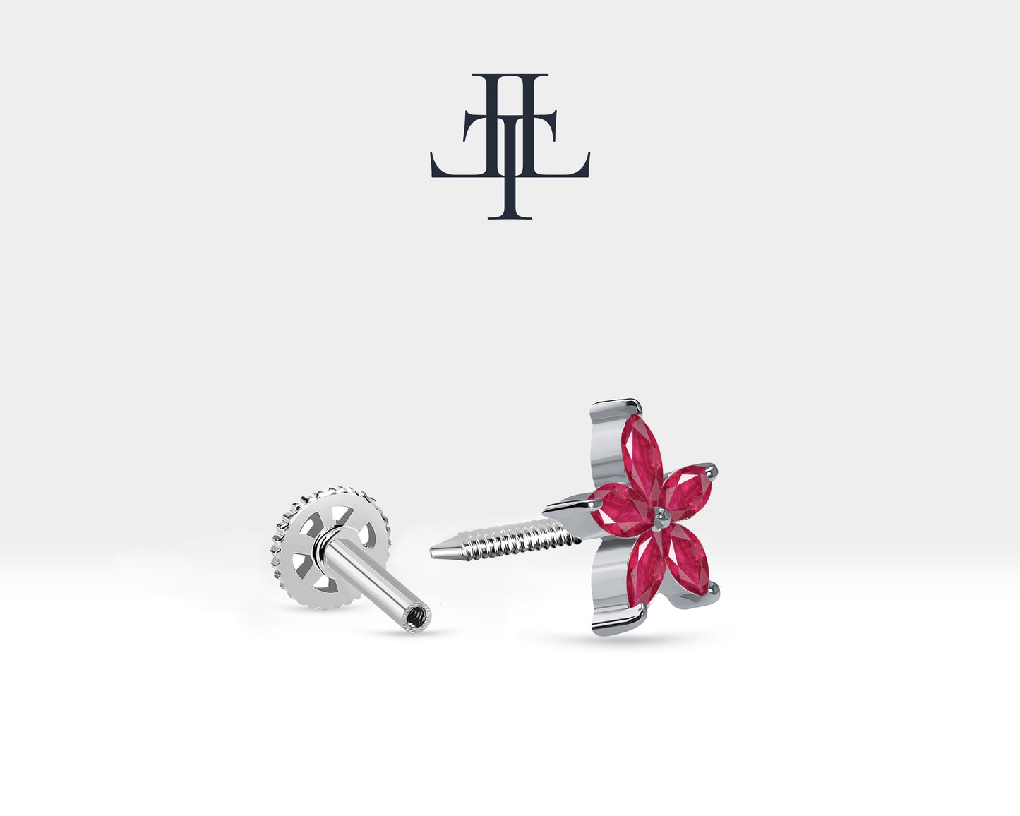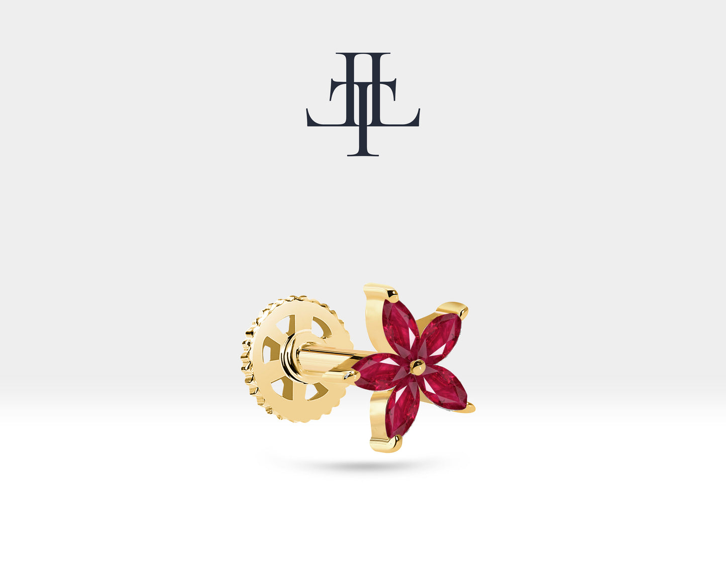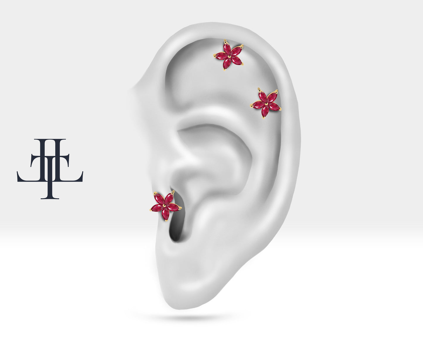 Tragus Piercing, Marquise Cut Star Design Ruby Piercing , Single Earring , 14K Solid Gold
